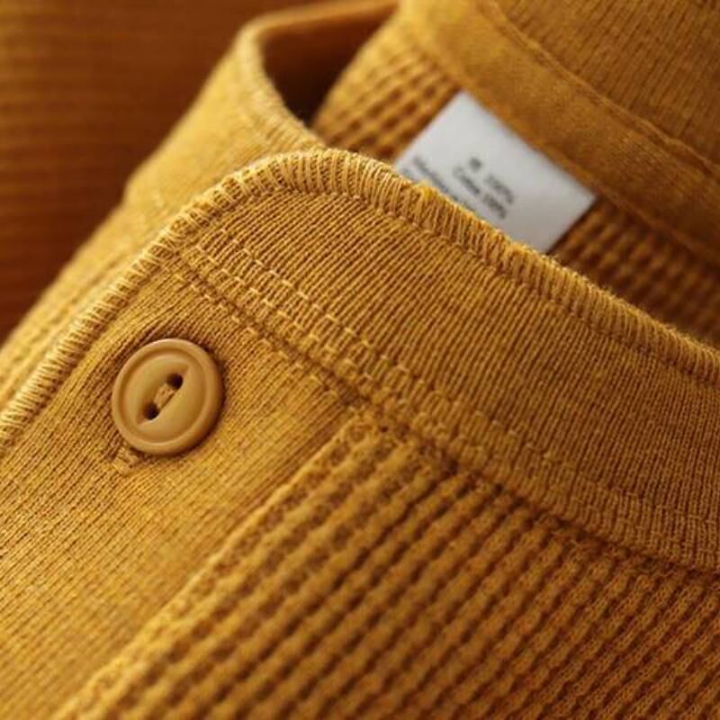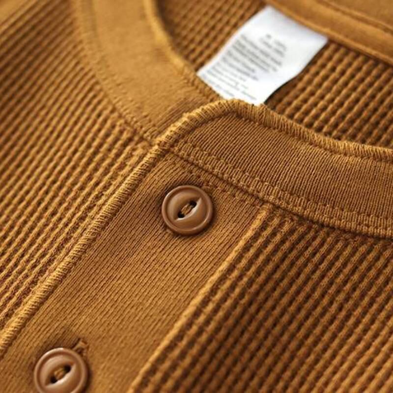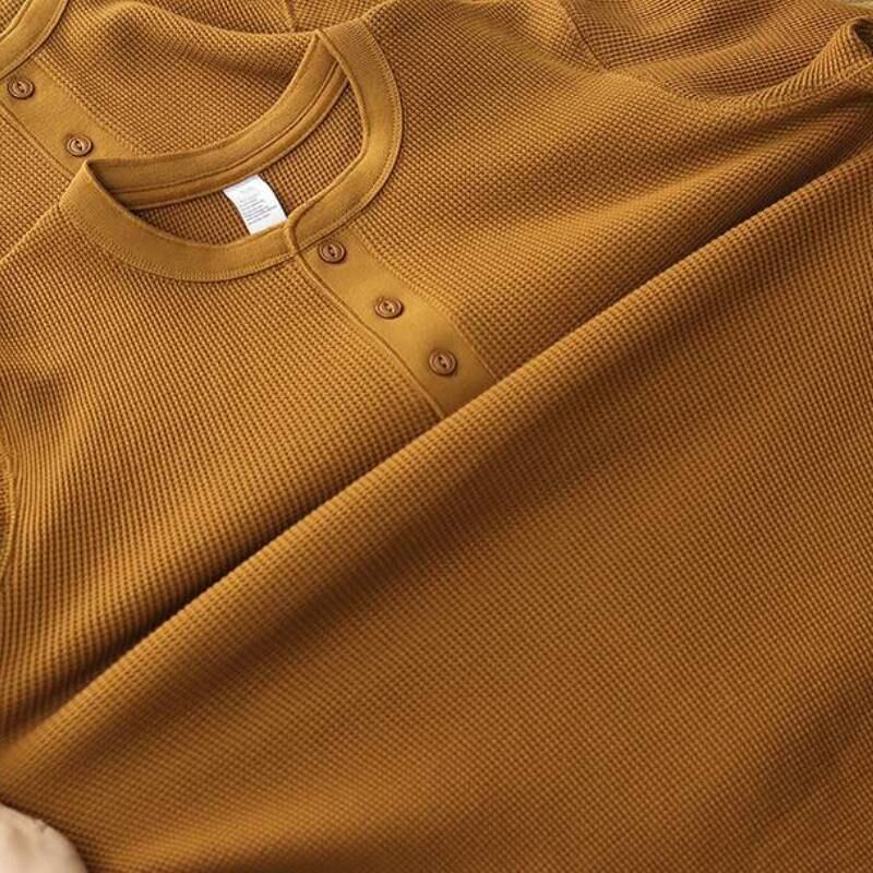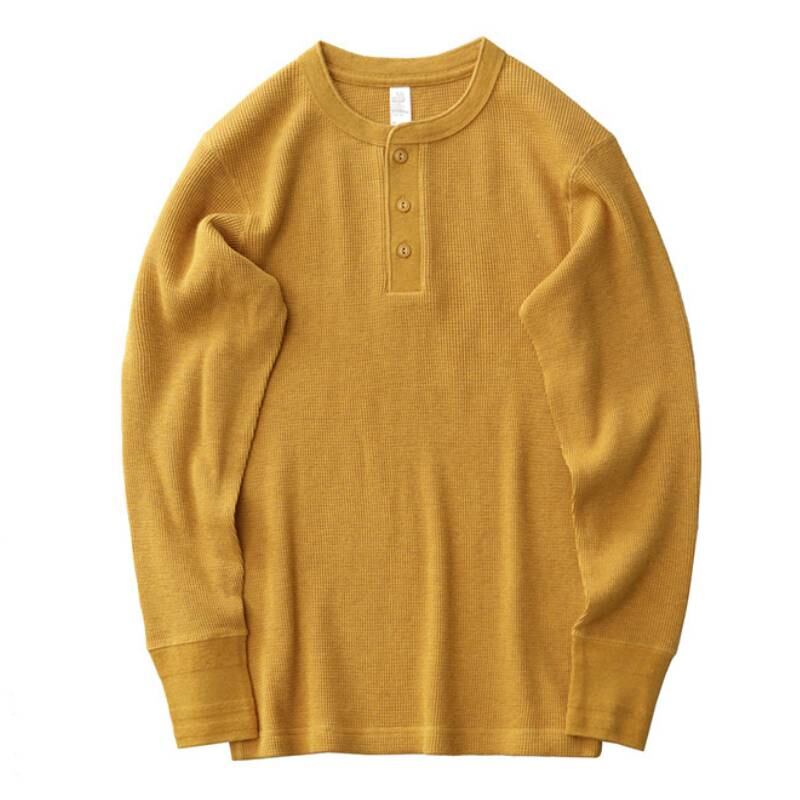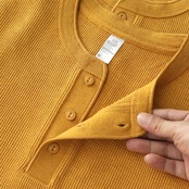 使い勝手の良いヘンリーネックのロングスリーブTシャツ。