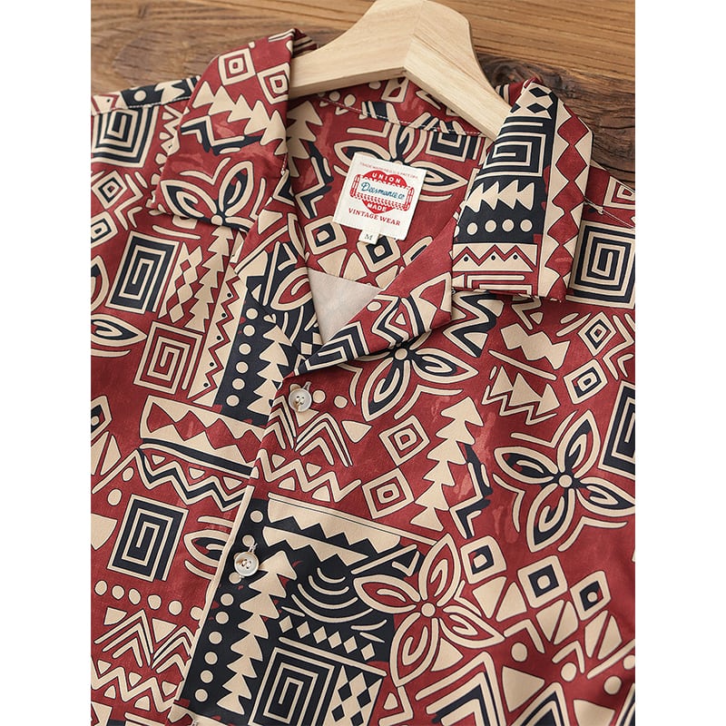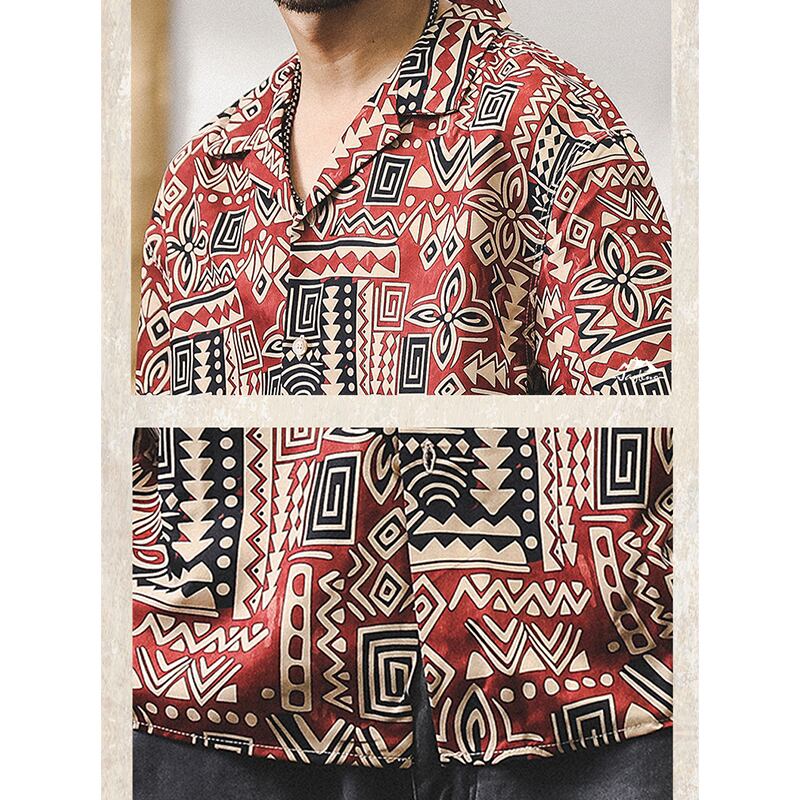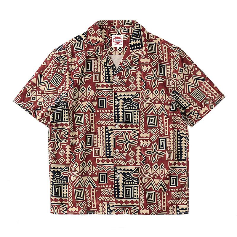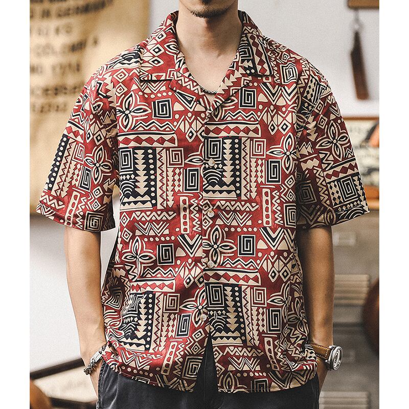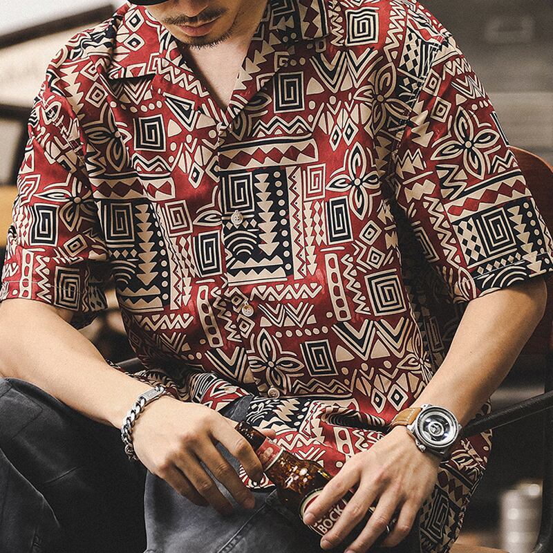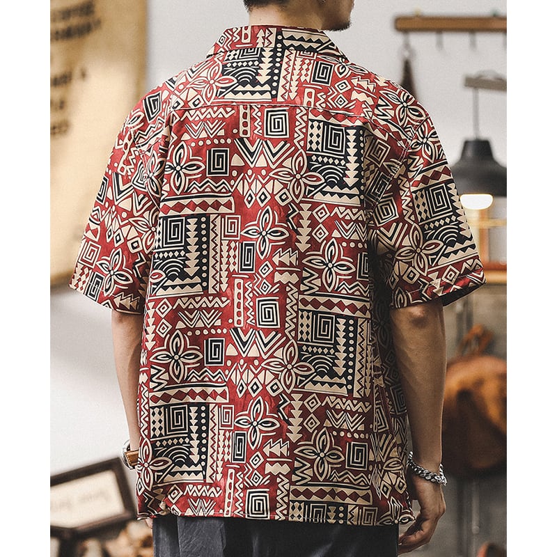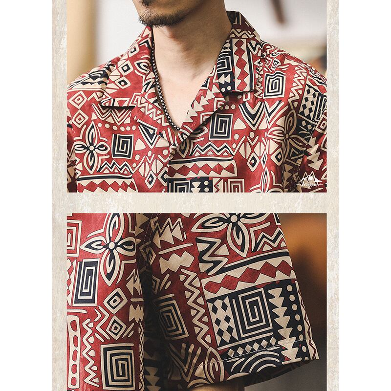 トライバル柄がレトロ感漂うオープンカラーシャツ。