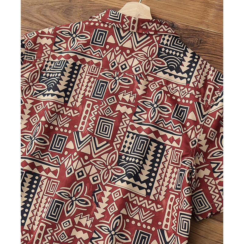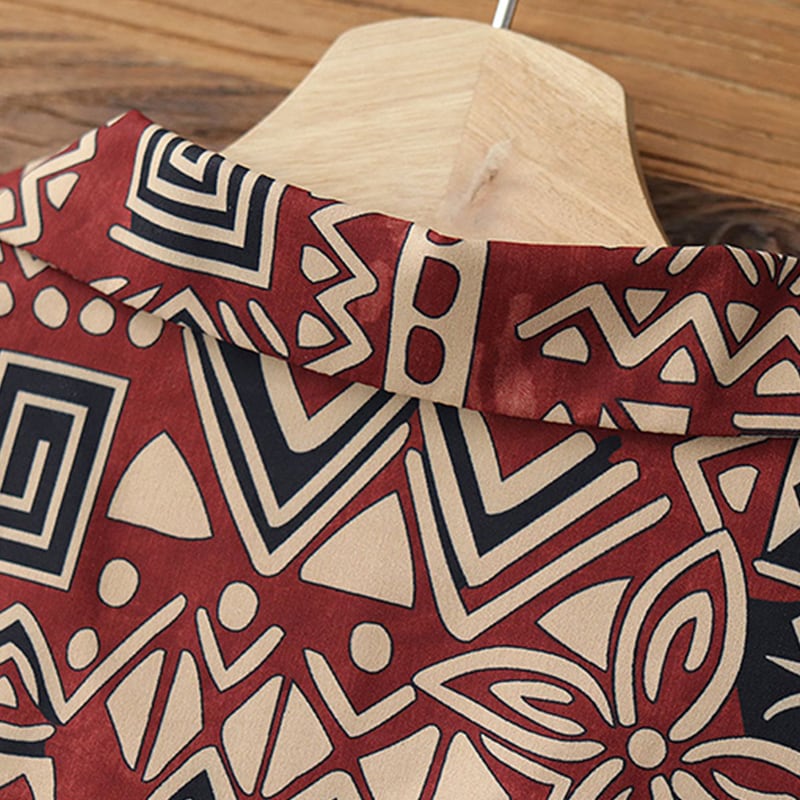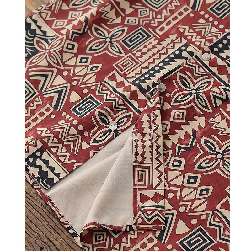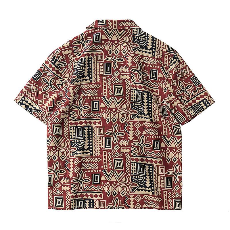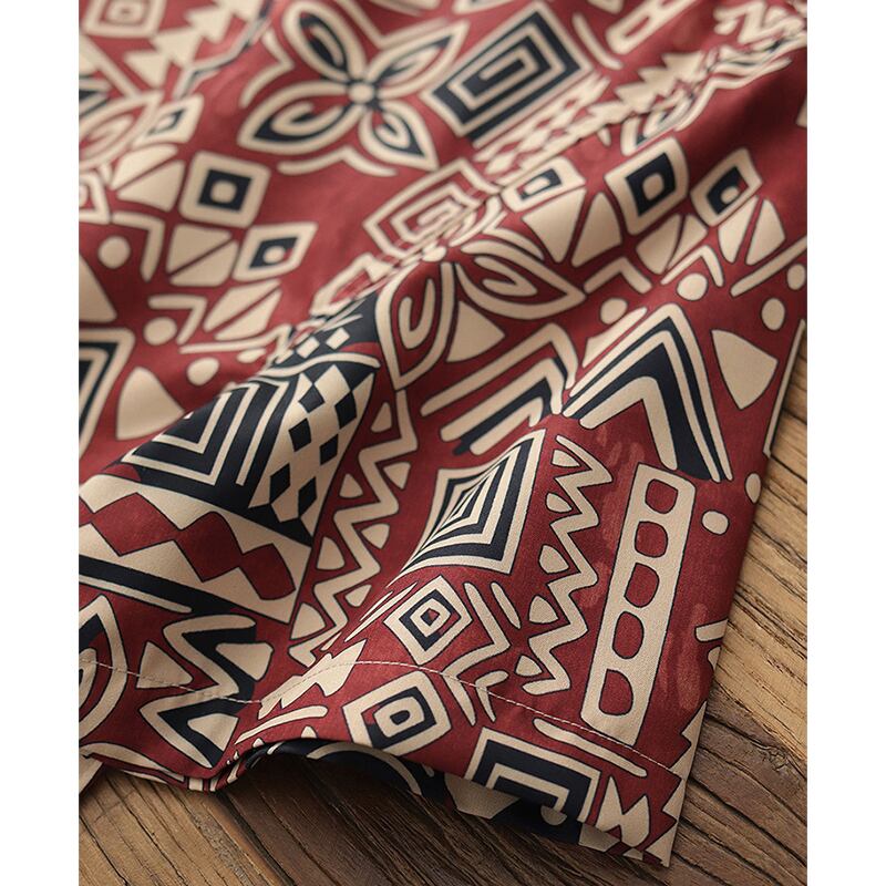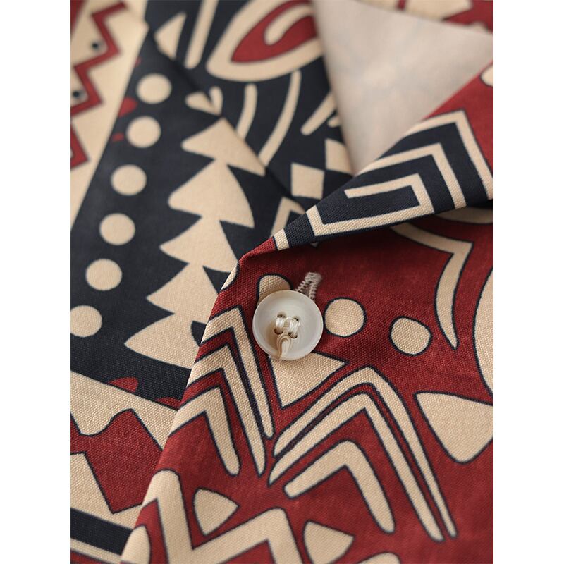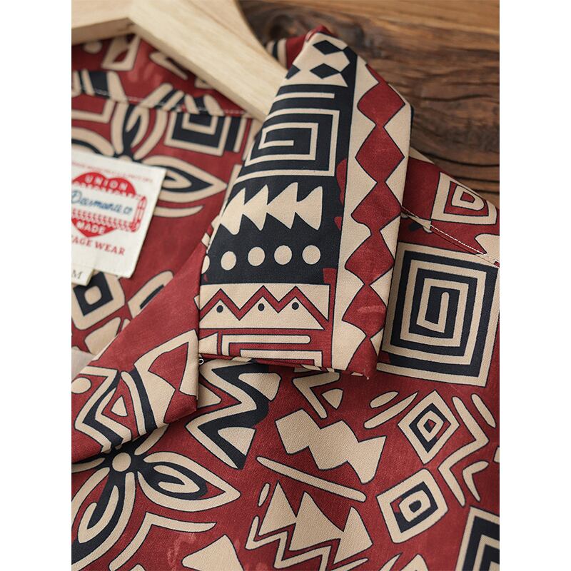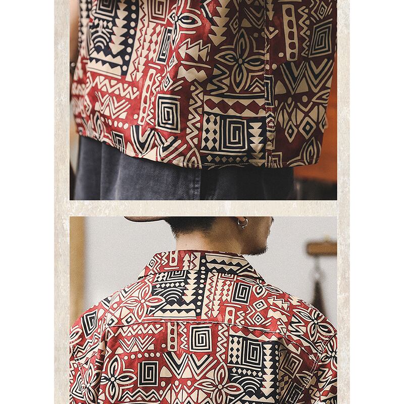 トライバル柄がレトロ感漂うオープンカラーシャツ。
