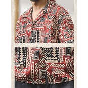 Tribal pattern like open collar shirt 00164