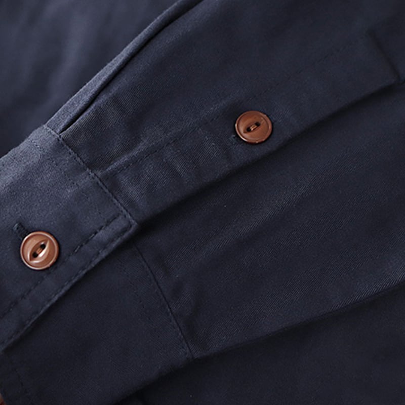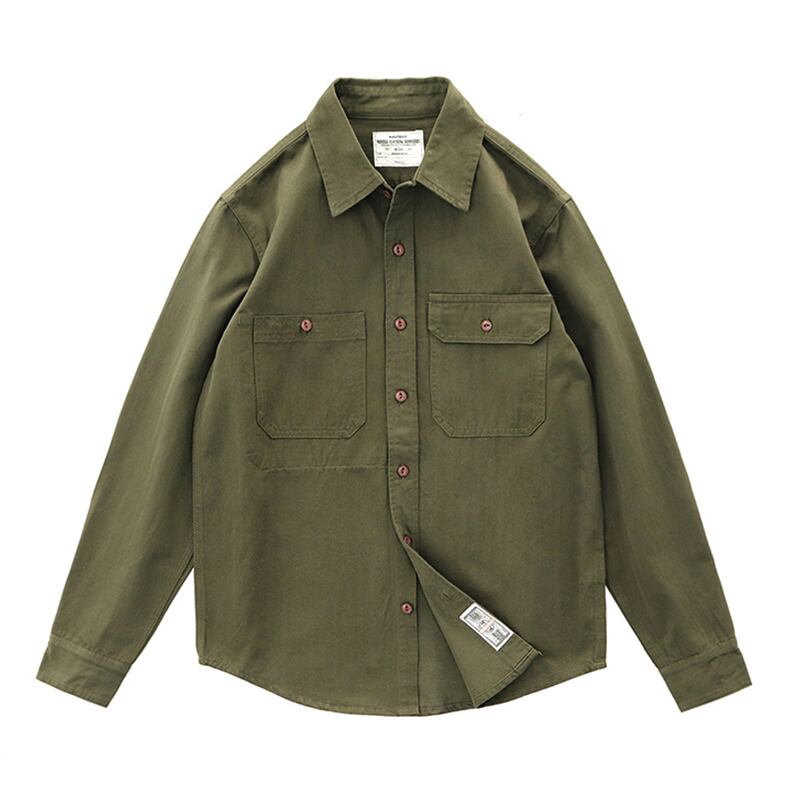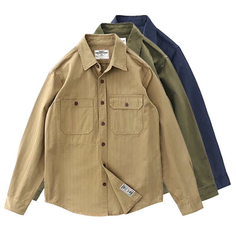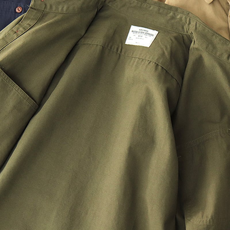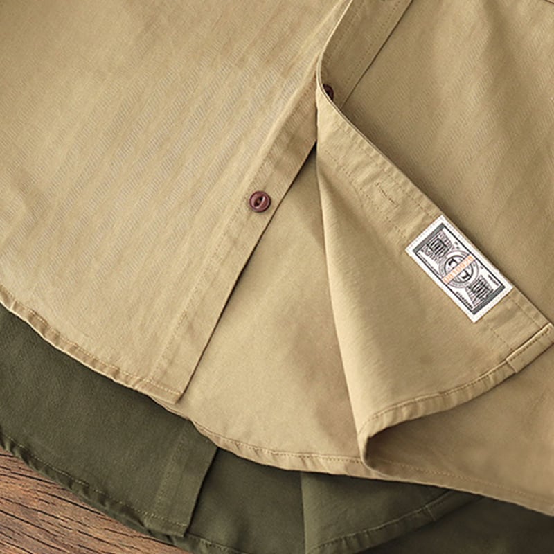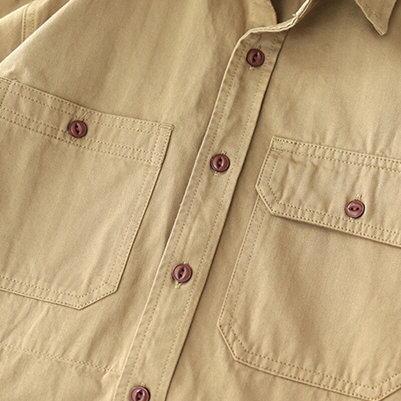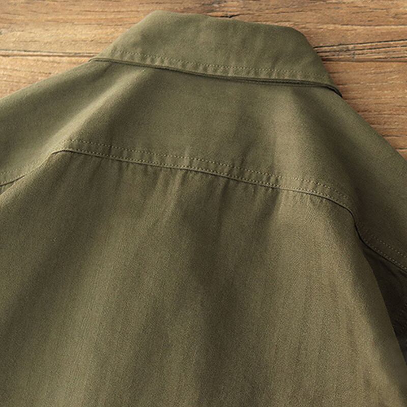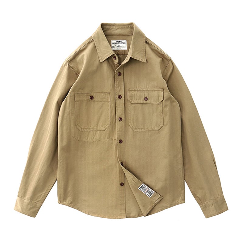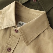 フロントのダブルフラップポケットが特徴的なミリタリーシャツ。