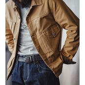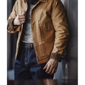 特徴的なカラーとフロントのフラップポケットが印象的なワークジャケット。