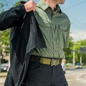 ミリタリーテイストのバックルが、着こなしに個性をプラスします。