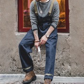 アメリカ海軍のデッキオーバーオールがモチーフのデニムオーバーオールです。