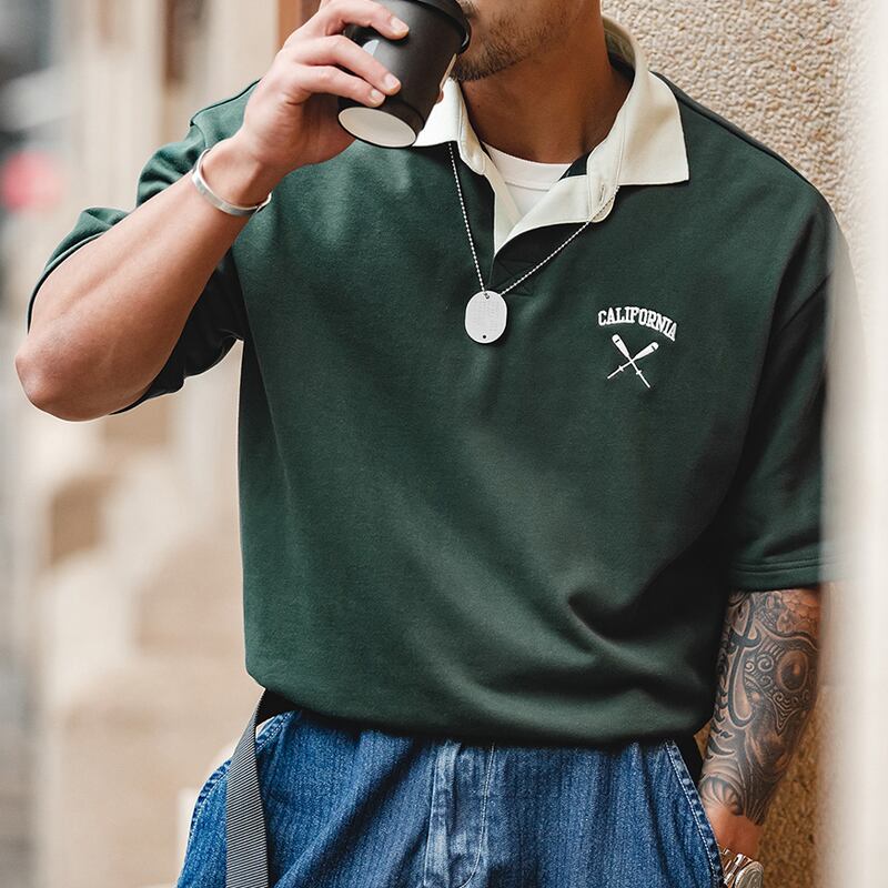 クラシック感のある落ち着いたグリーンのボディに、さりげない刺繍がアクセントになったポロシャツ。