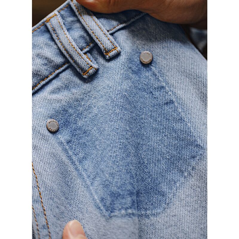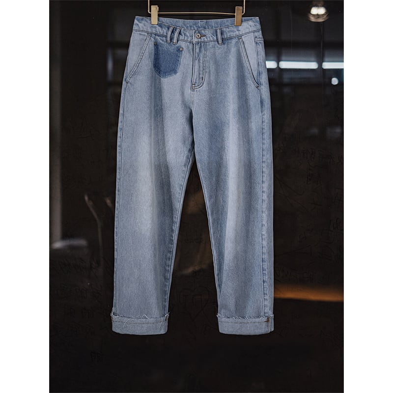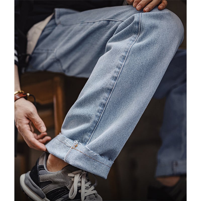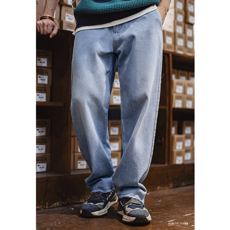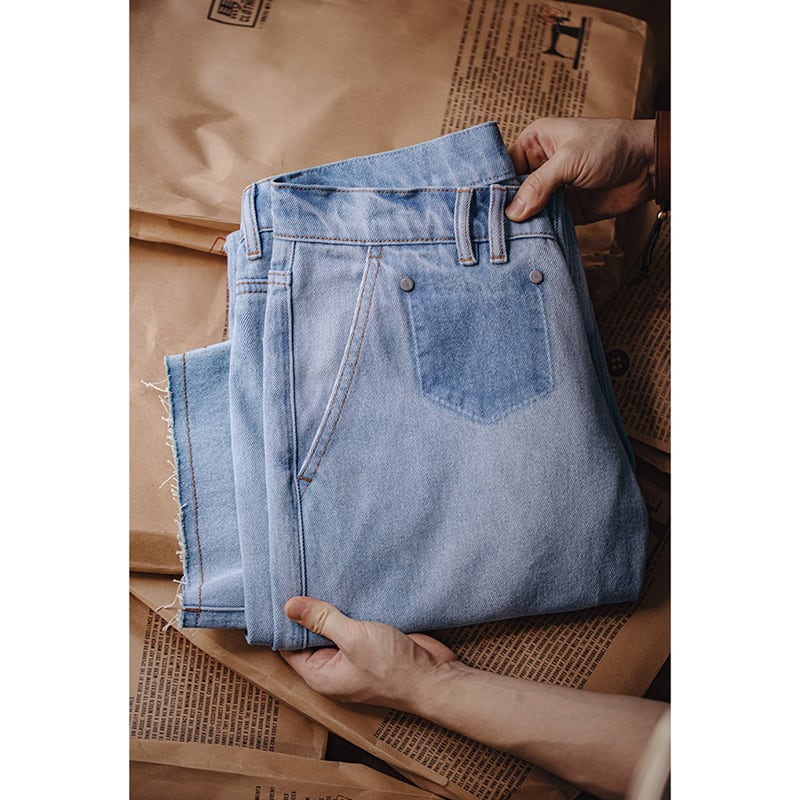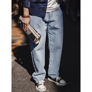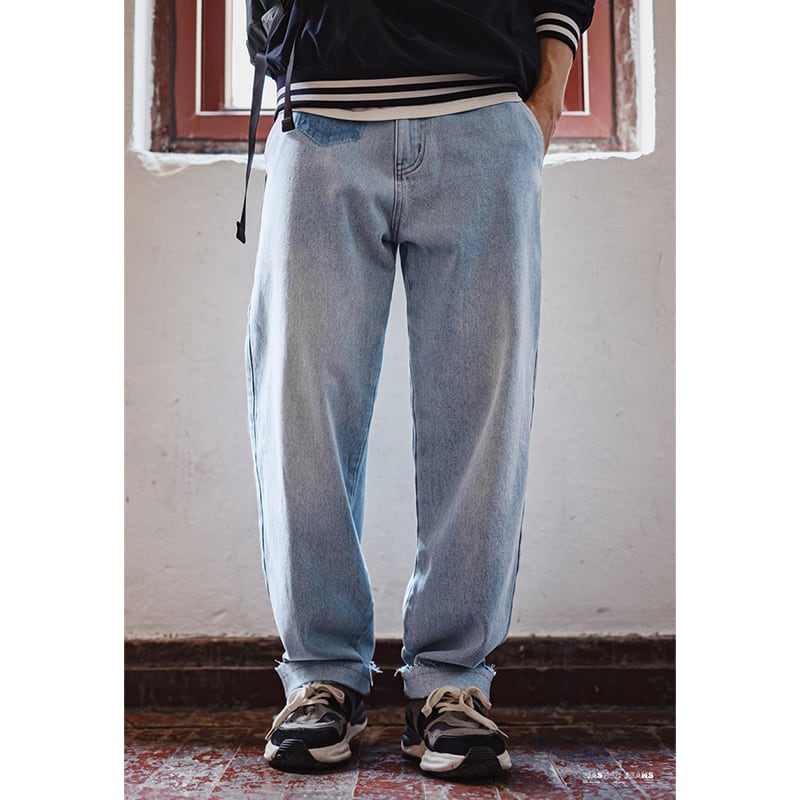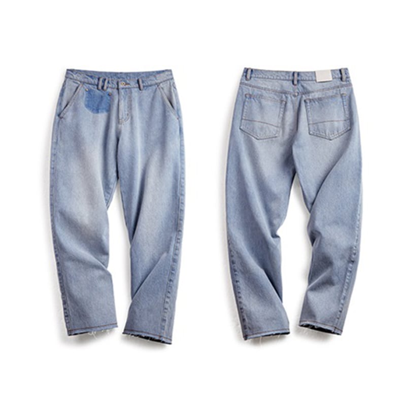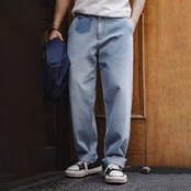 ライトカラーが特徴的なウォッシュ加工のデニムパンツ。