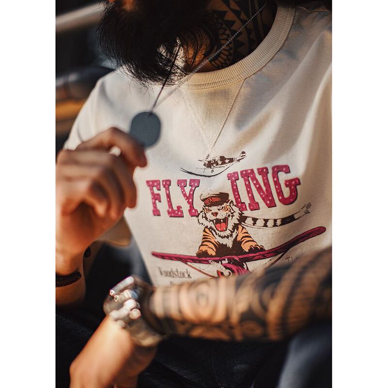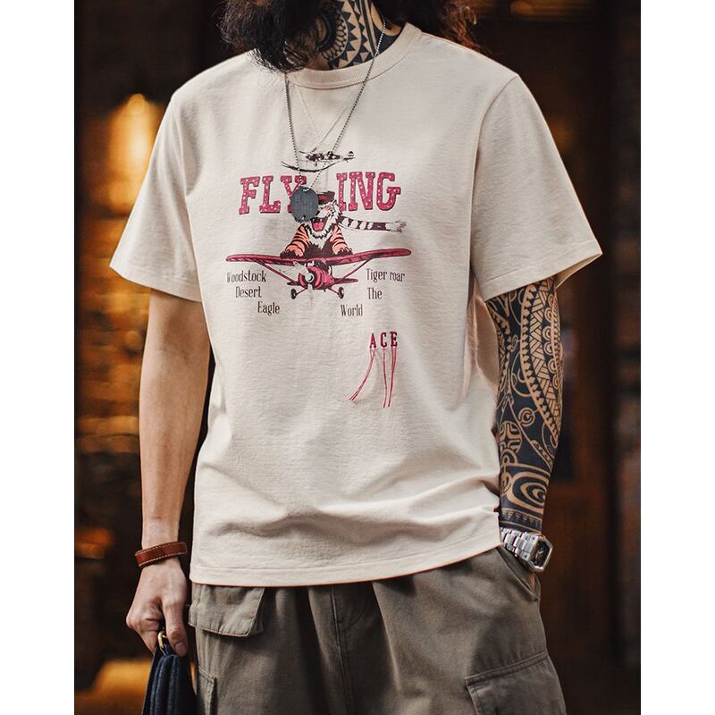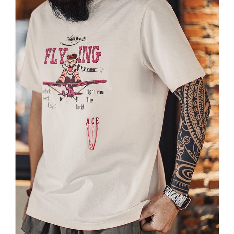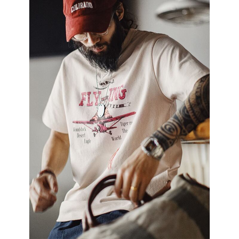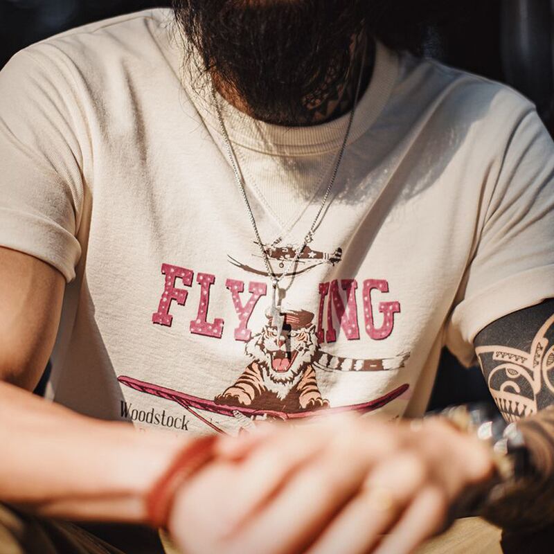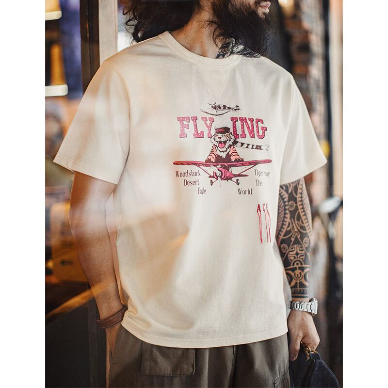 ヴィンテージ感漂うフライングタイガーのグラフィックプリントが目を惹くTシャツ。