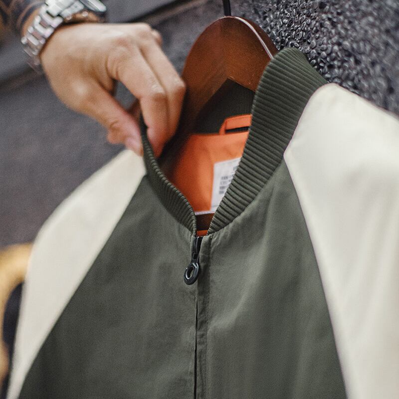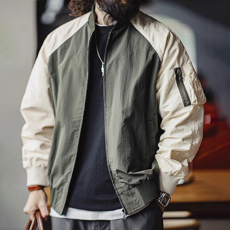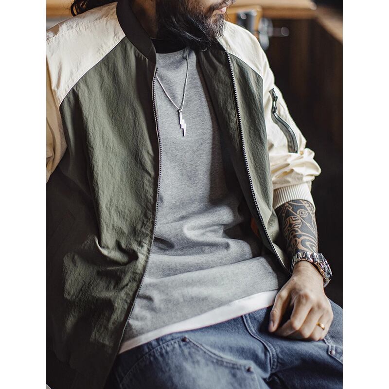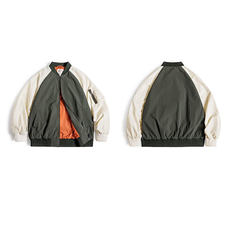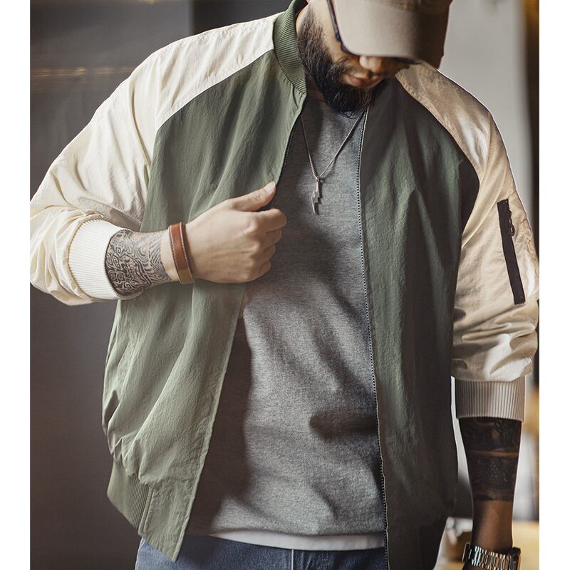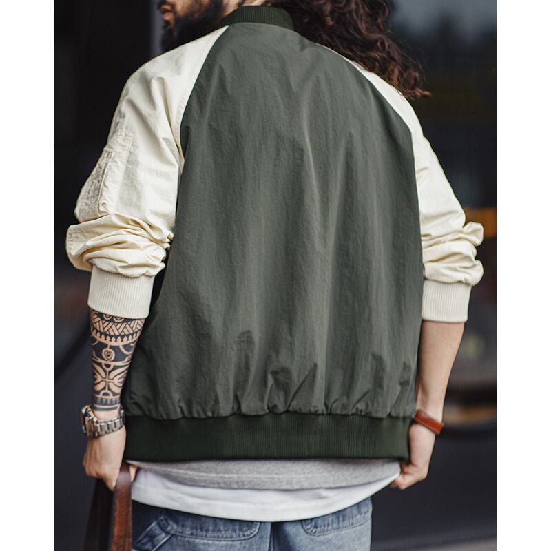 バイカラーデザインが目を惹くボンバージャケット。