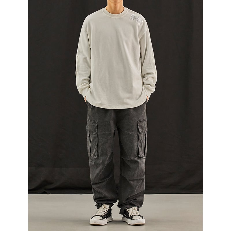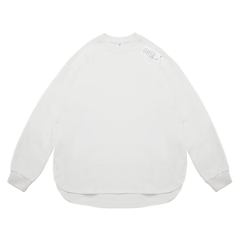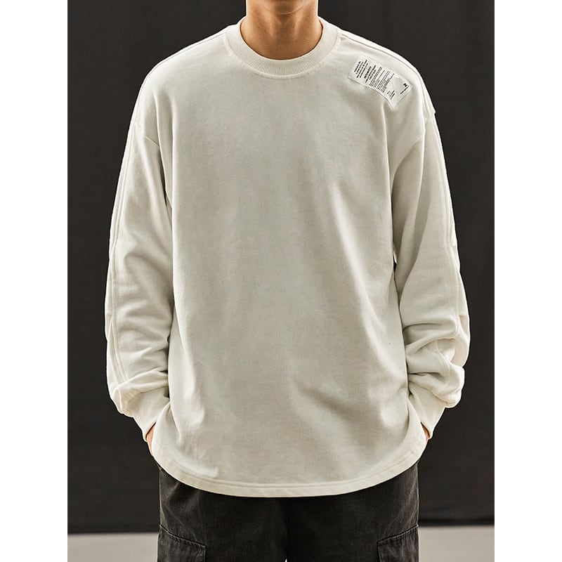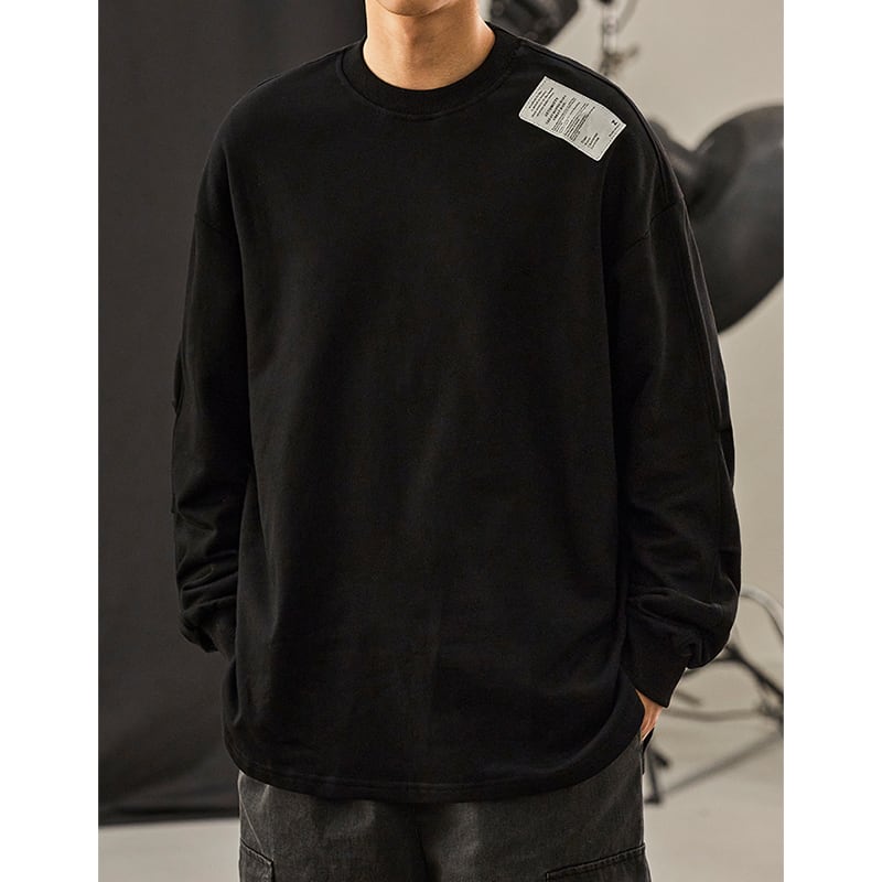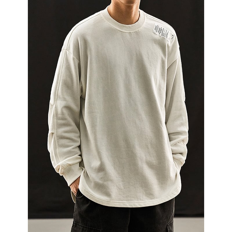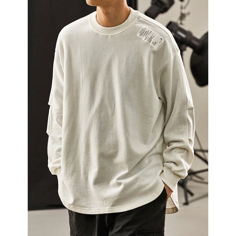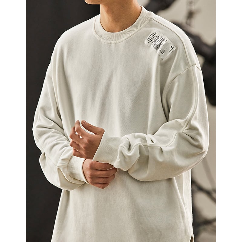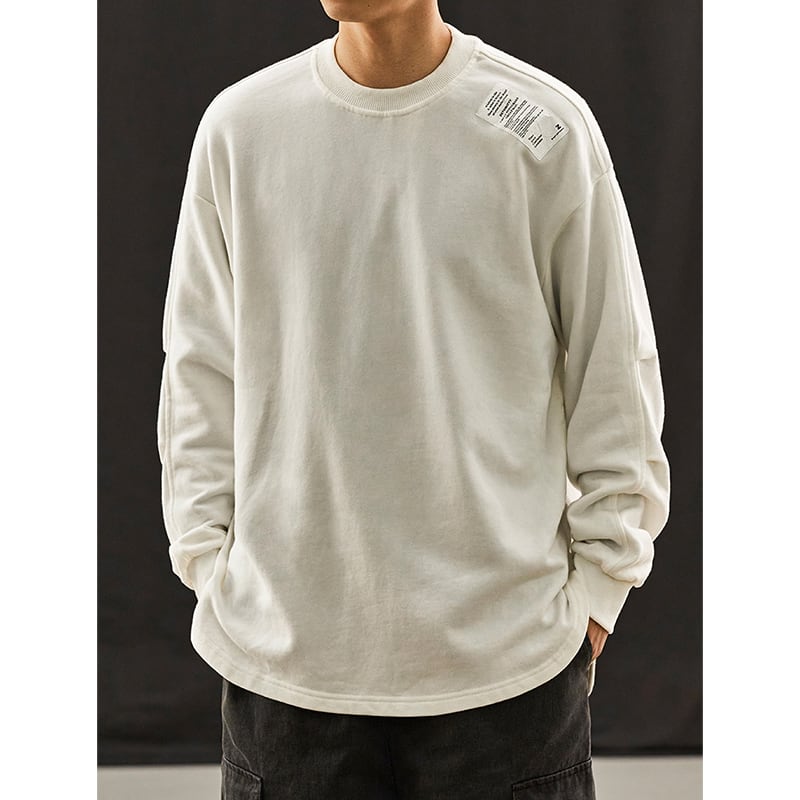 ショルダーのラベルパッチがミリタリーテイストなスウェット。