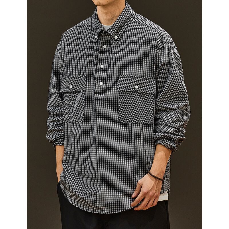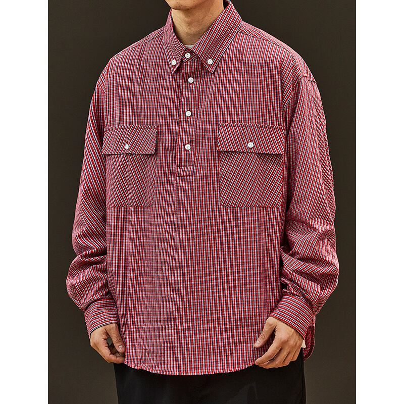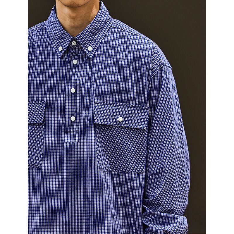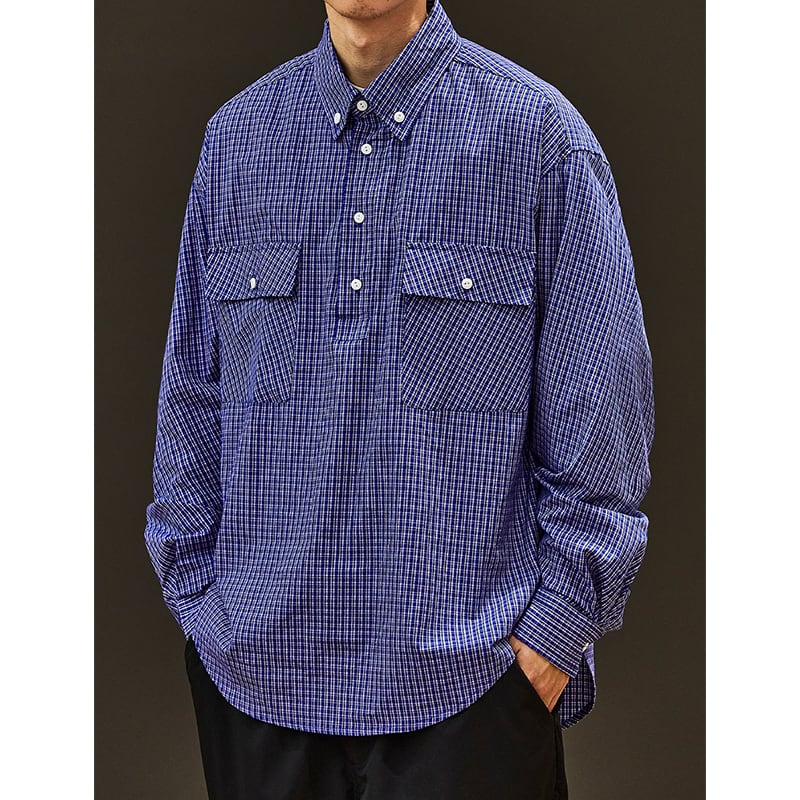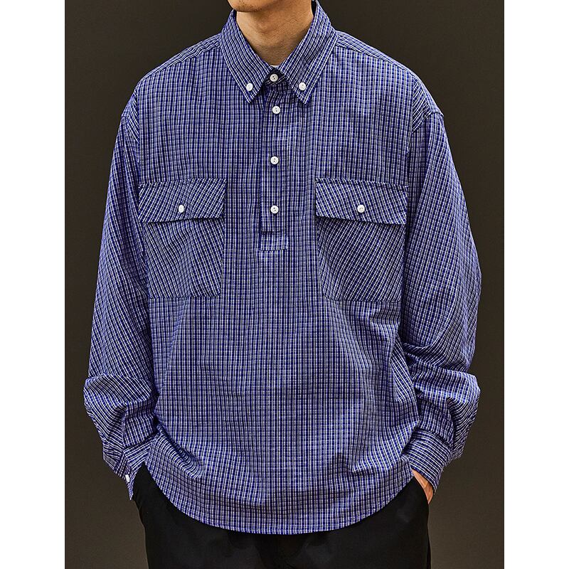 ギンガムチェック柄が特徴的なボタンダウンのプルオーバーシャツ。