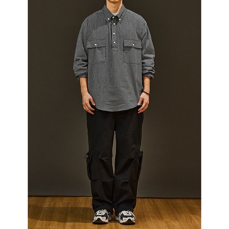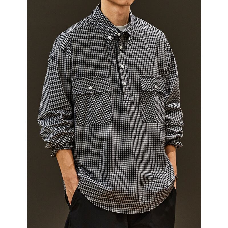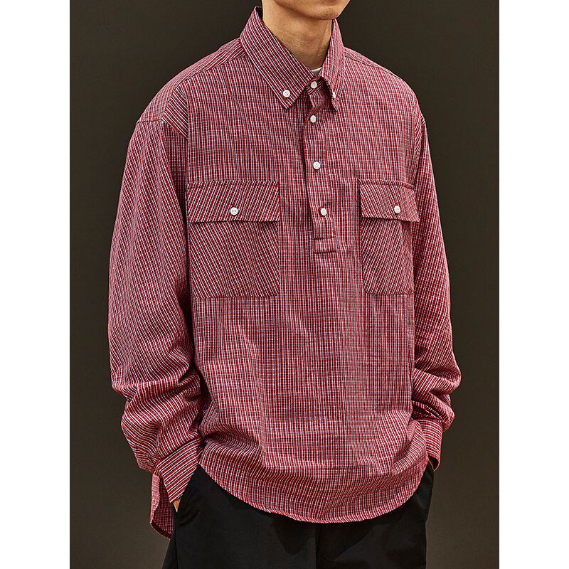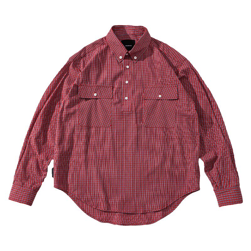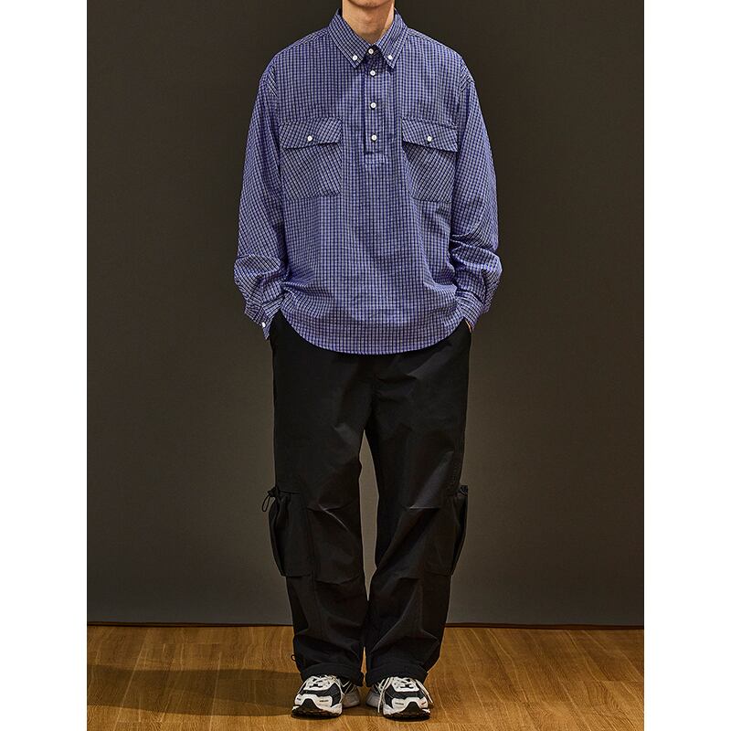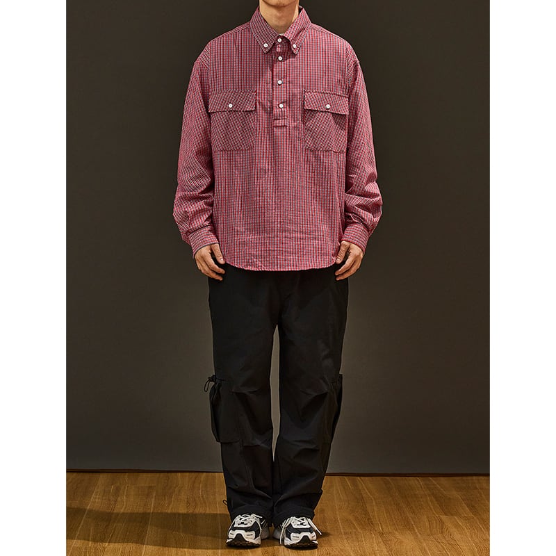 ギンガムチェック柄が特徴的なボタンダウンのプルオーバーシャツ。
