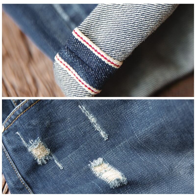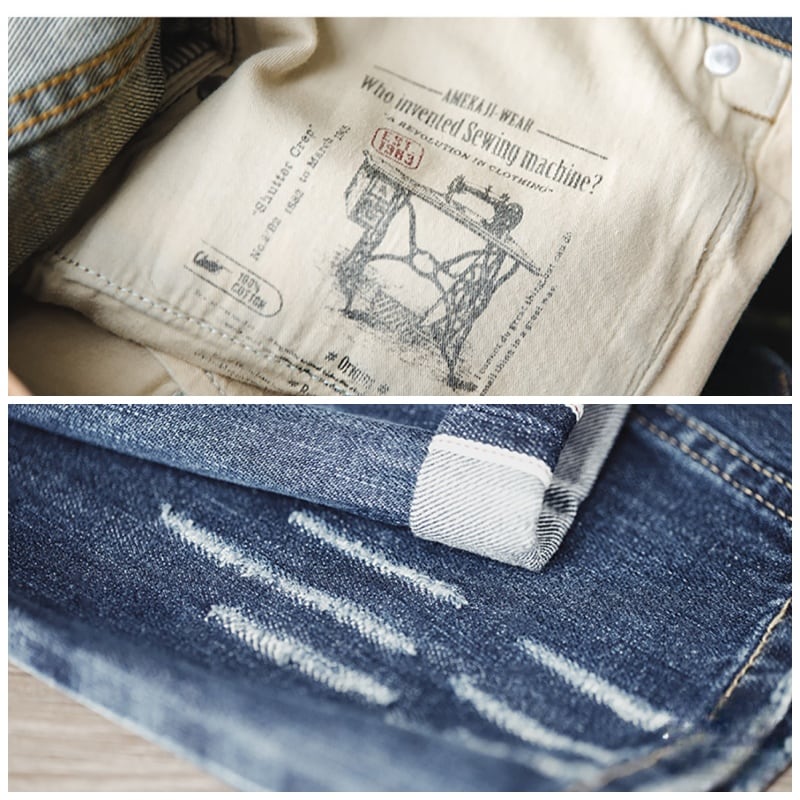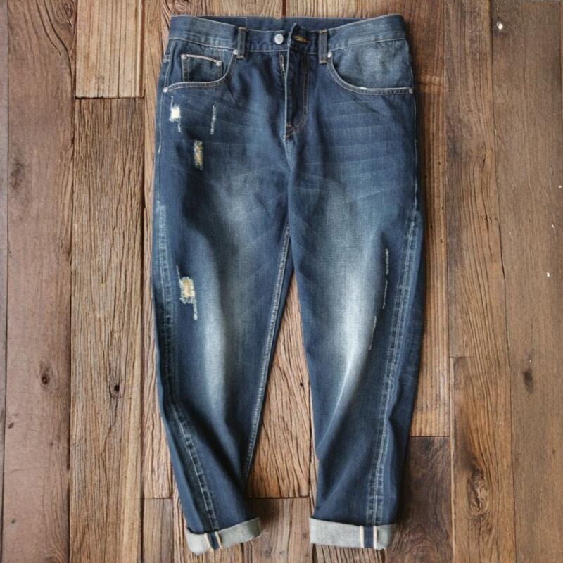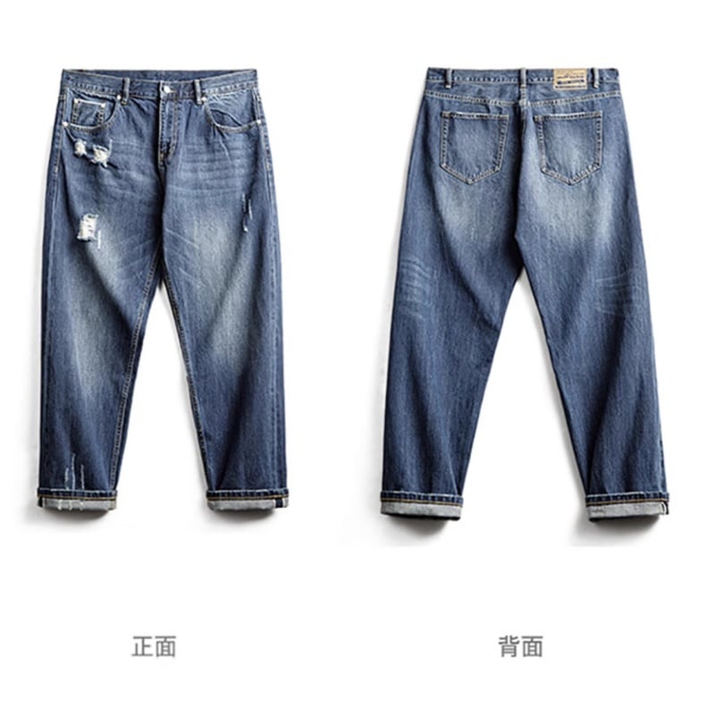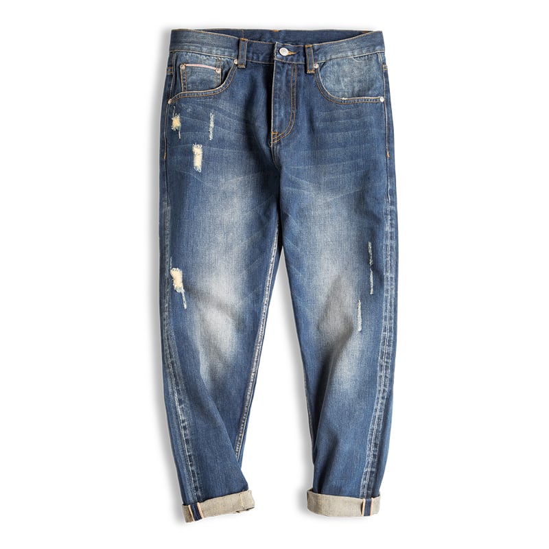 Damage processed tapered denim pants 00258