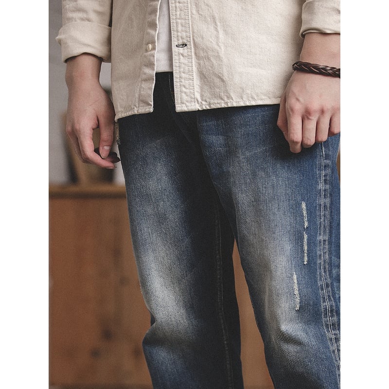 絶妙なダメージ加工と色落ち具合が魅力のデニムパンツ。