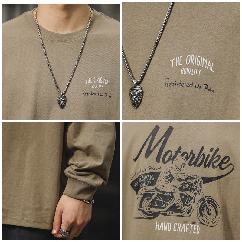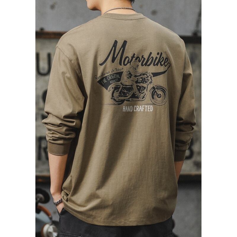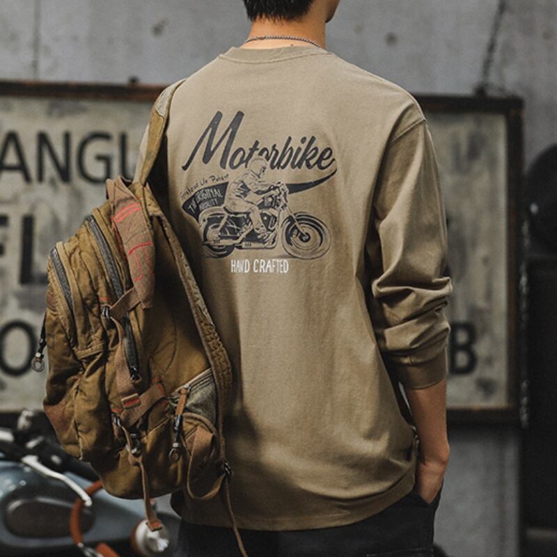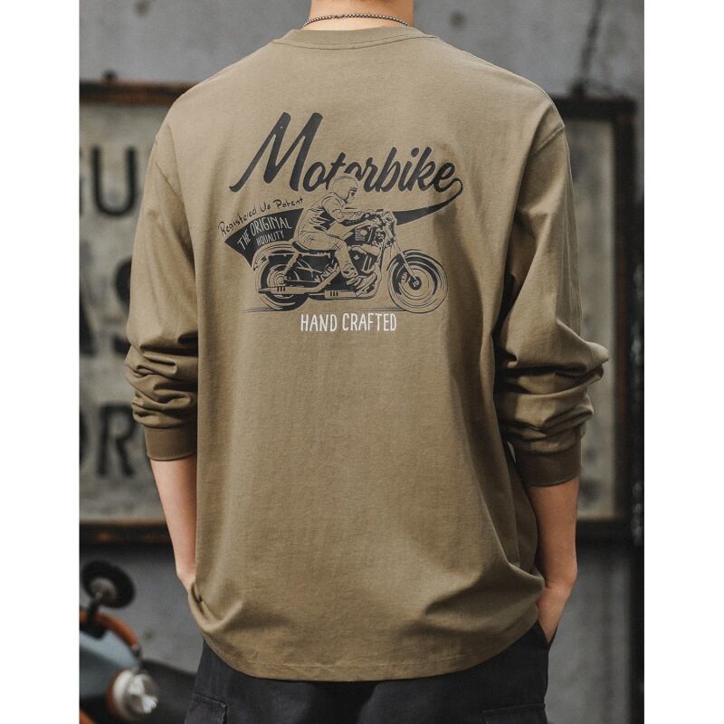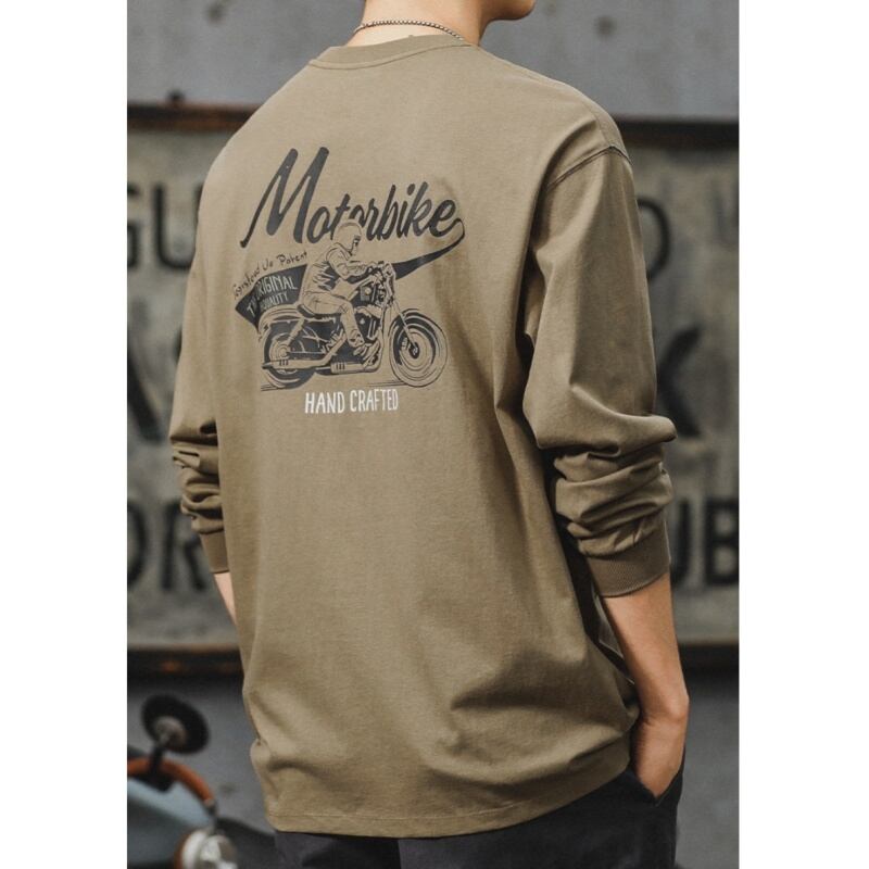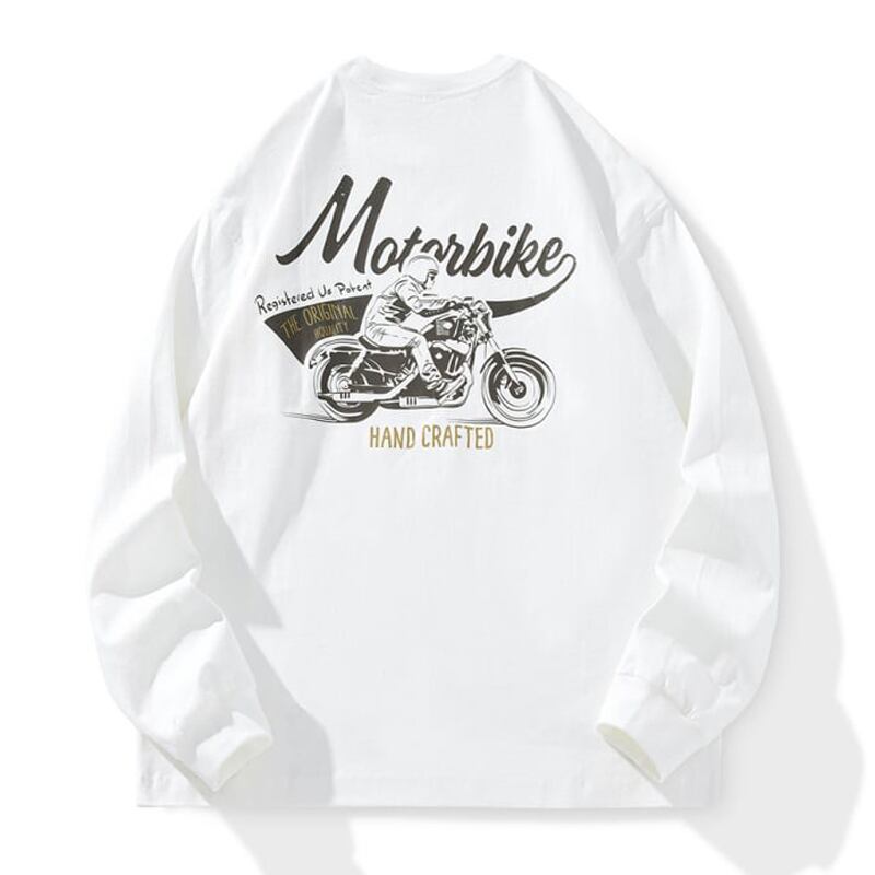 Back motorcycle print crew neck long sleeve t-shirt 00263