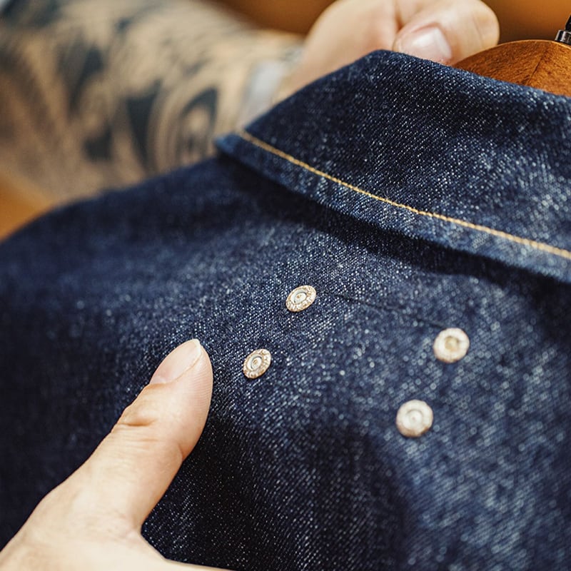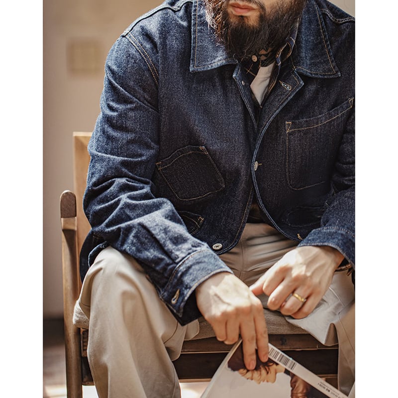 フロントの大小4つのパッチポケットが特徴的なデニムジャケット。