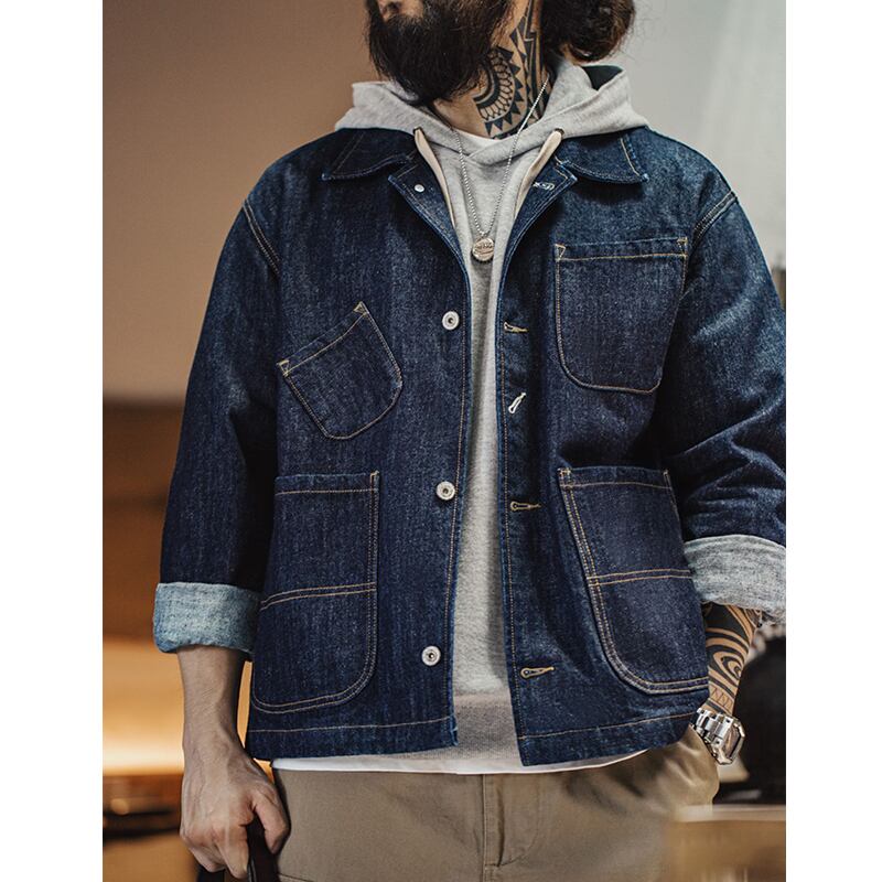 Four patch pockets denim work jacket 00268