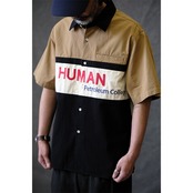 カラーブロックと刺繍ロゴデザインが目を惹くレトロなシャツ。
