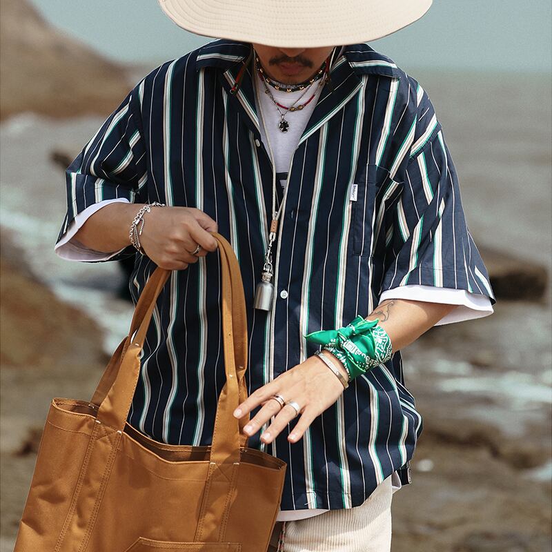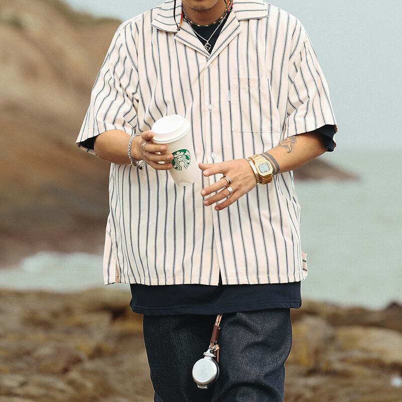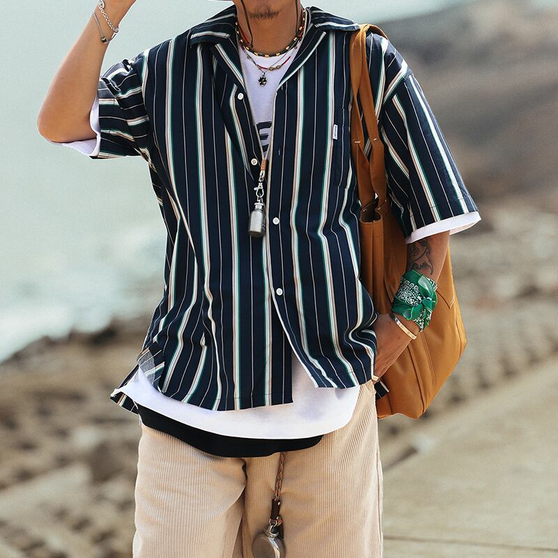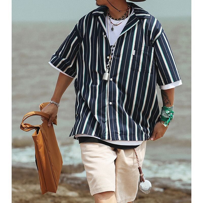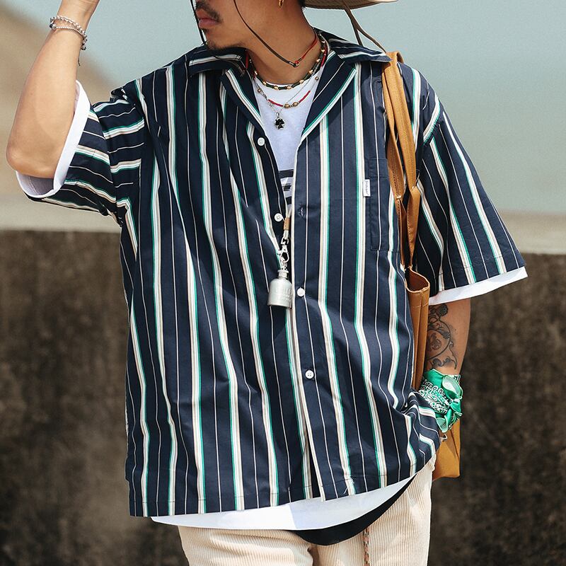 Multicolor stripes pattern short sleeve shirt 00317
