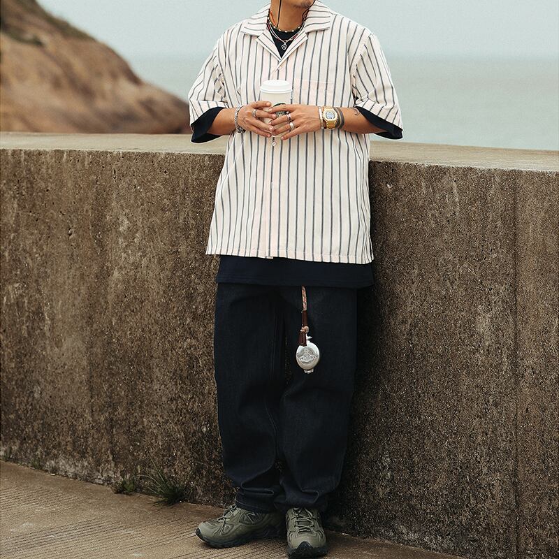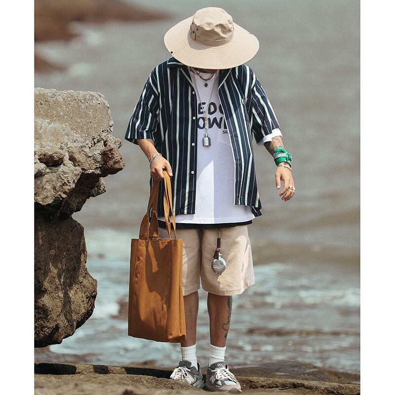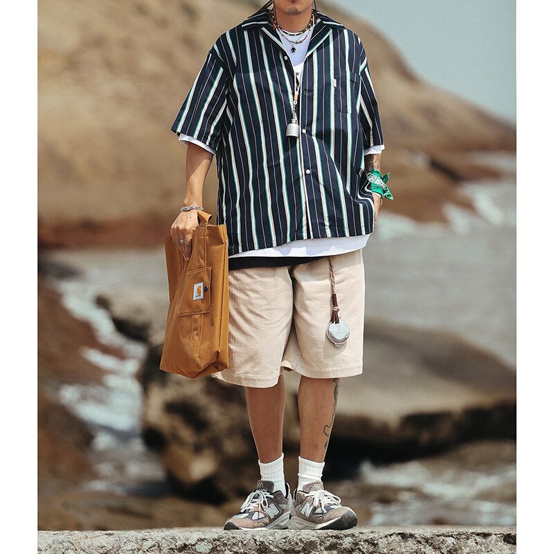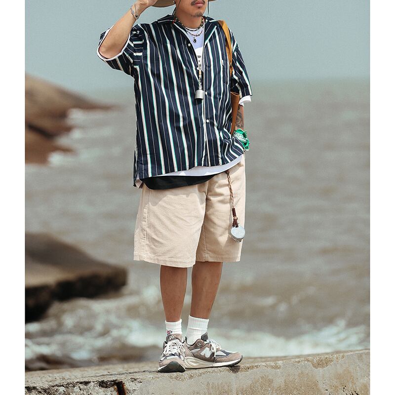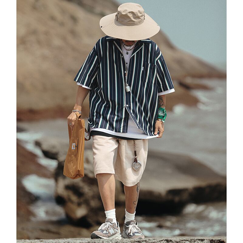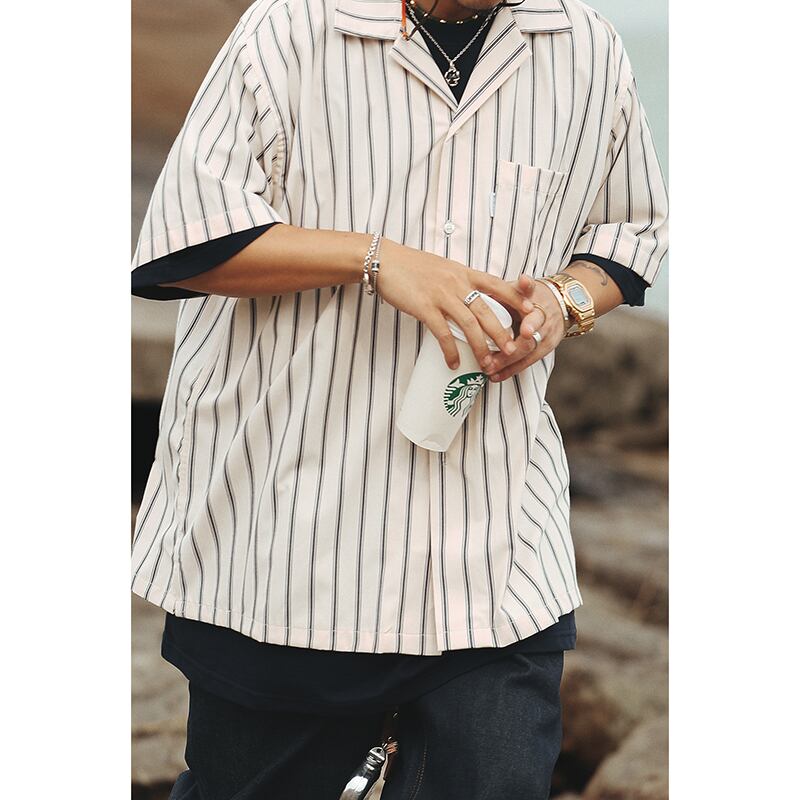 Multicolor stripes pattern short sleeve shirt 00317