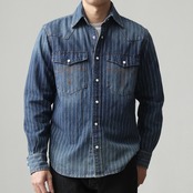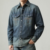 ヴィンテージの雰囲気漂う、デニムシャツに上品なストライプ柄が魅力のデニムシャツ。