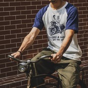 Biker print raglan sleeve short sleeve t-shirt 00366