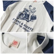 レトロなバイカーモチーフのグラフィックが目を引くTシャツ。