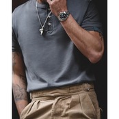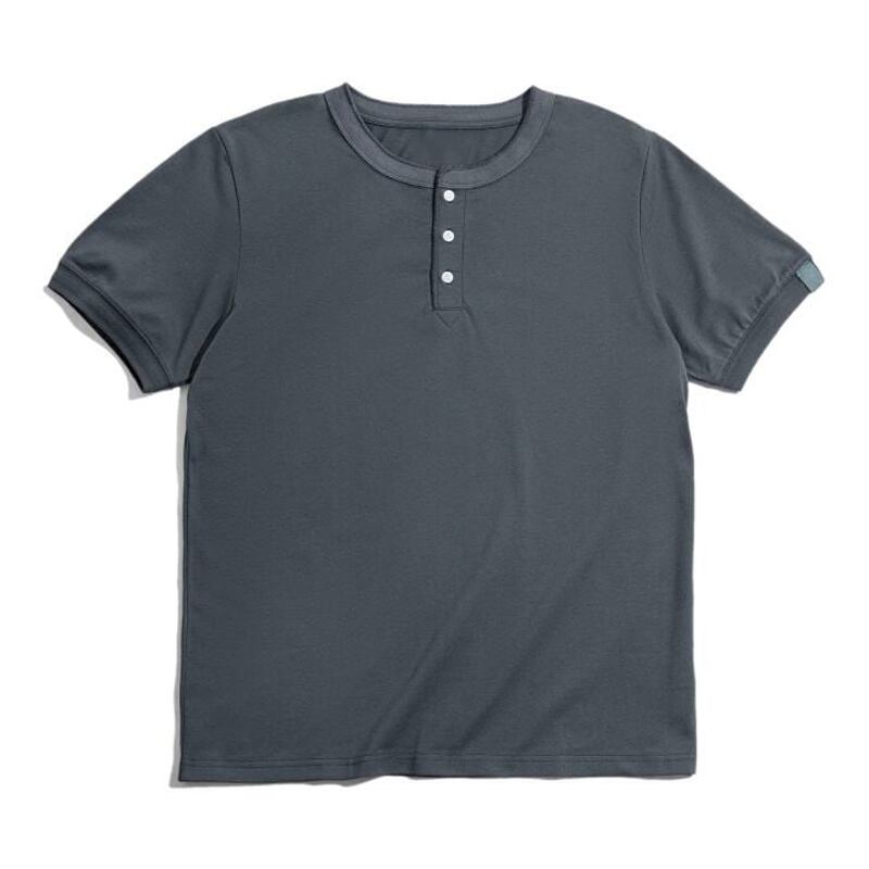 ヘビーウェイトのヘンリーネック半袖Tシャツ。
