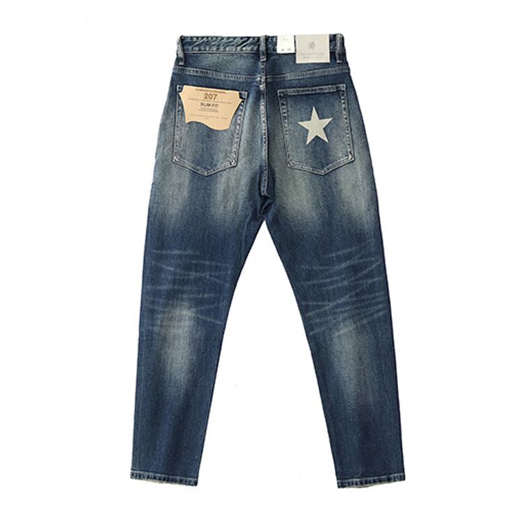 Back pocket star shaped washed denim pants 00383