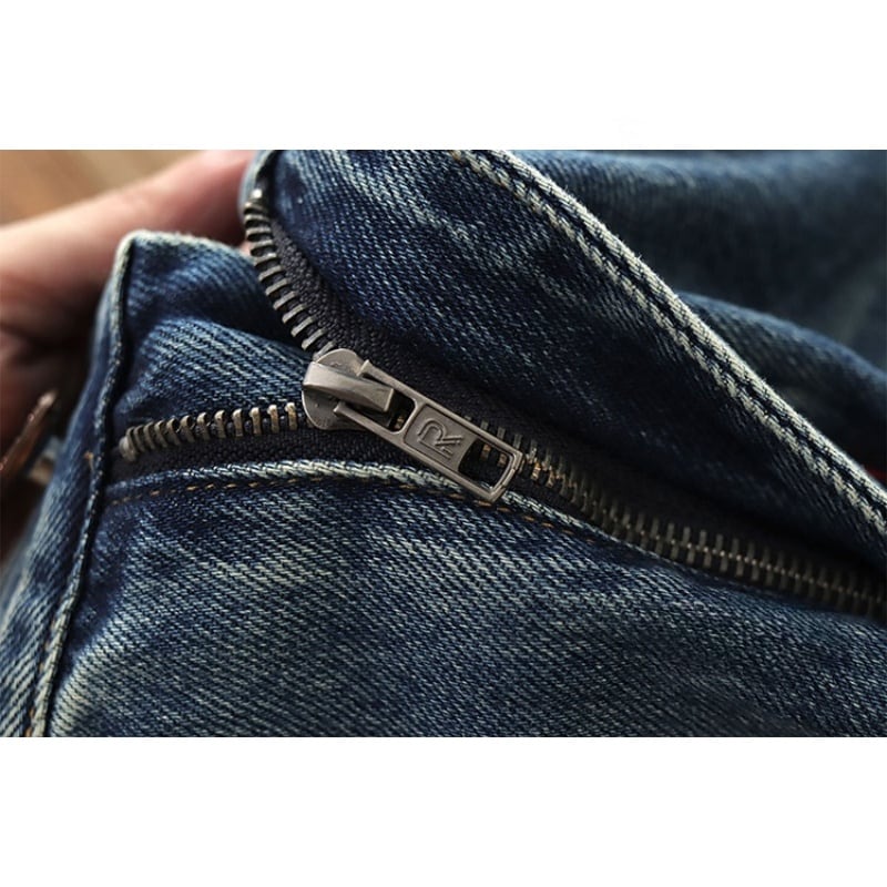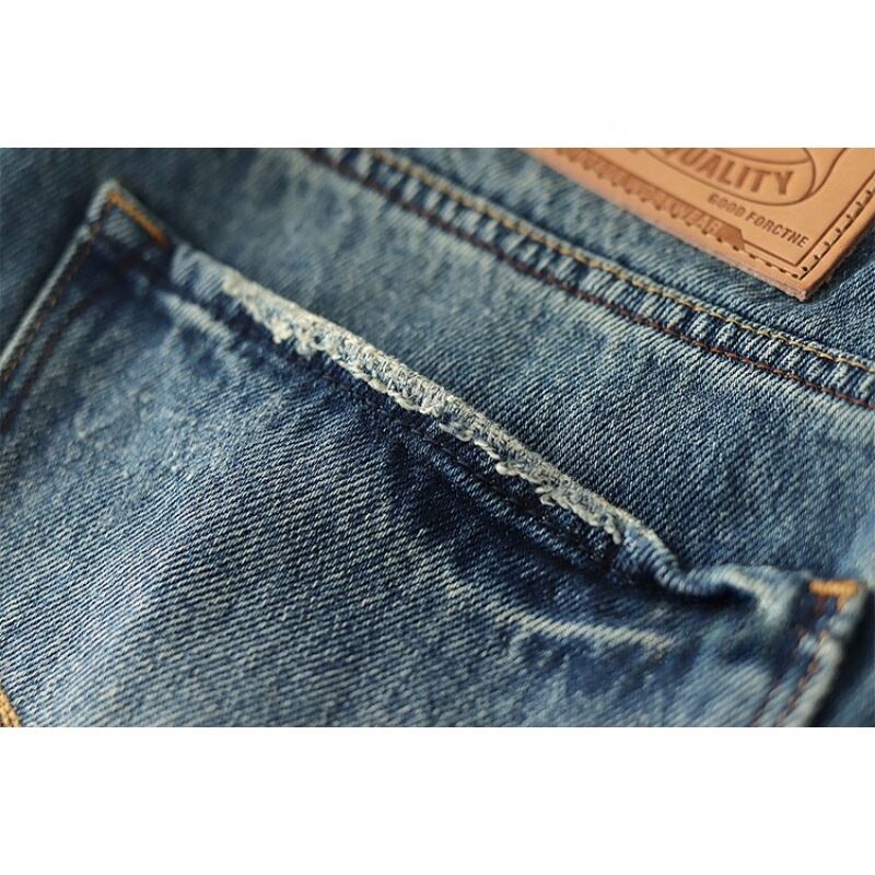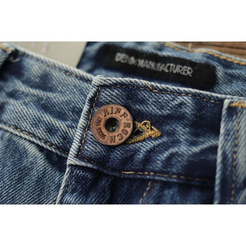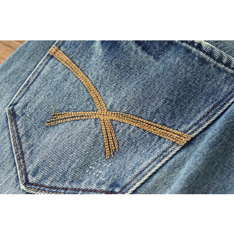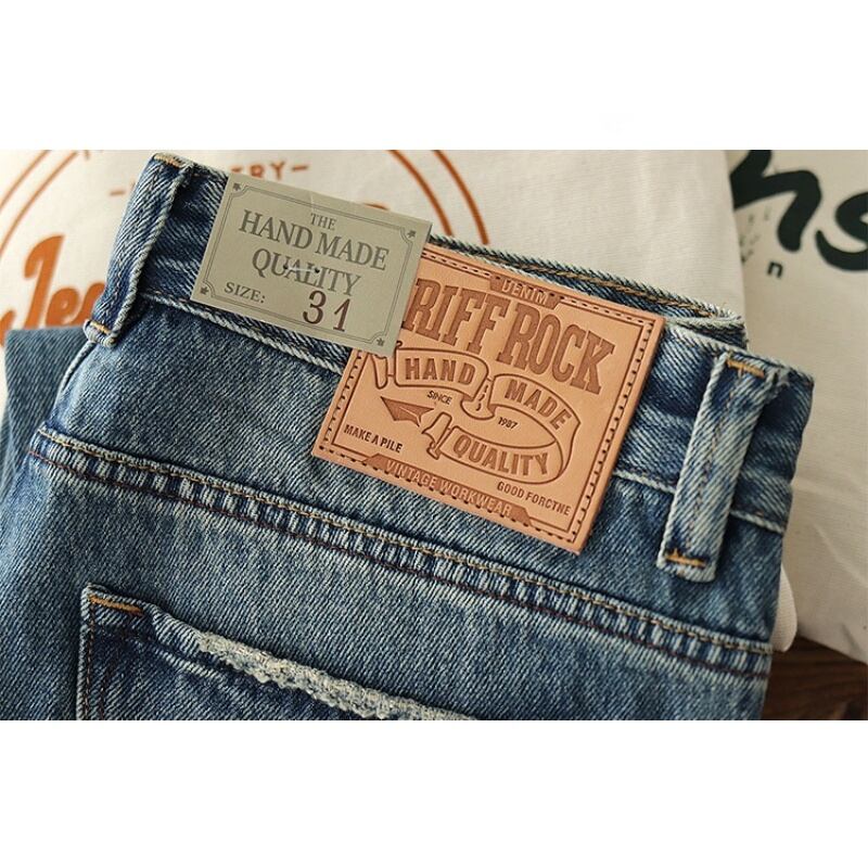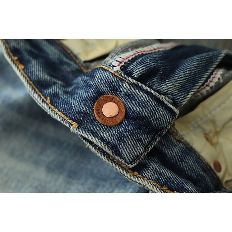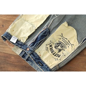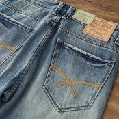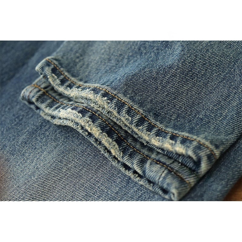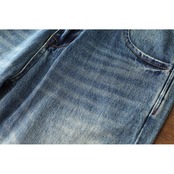 ウォッシュ加工と適度にダメージ加工を施したテーパードシルエットのデニムパンツ。
