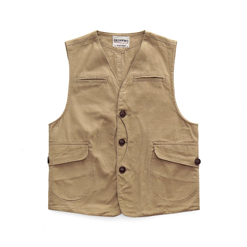 ヴィンテージのハンティングベストがモチーフのベスト。