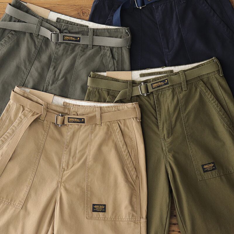 ウエストには同色のウェビングベルトを採用し、ほど良いアクセントに。