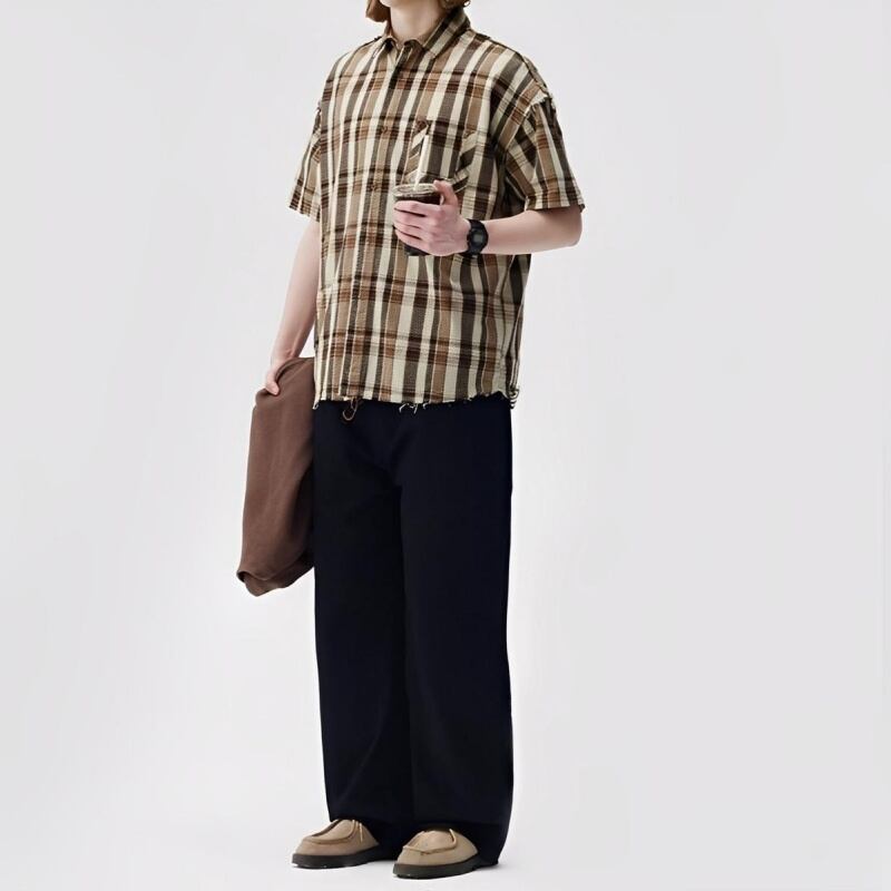 クラシックなチェック柄に、エッジの効いたラギッドなディテールをプラス。