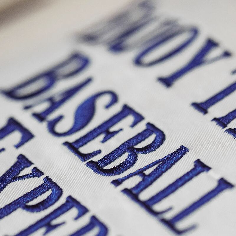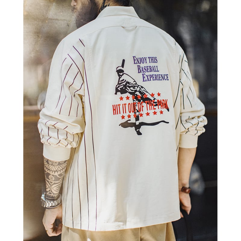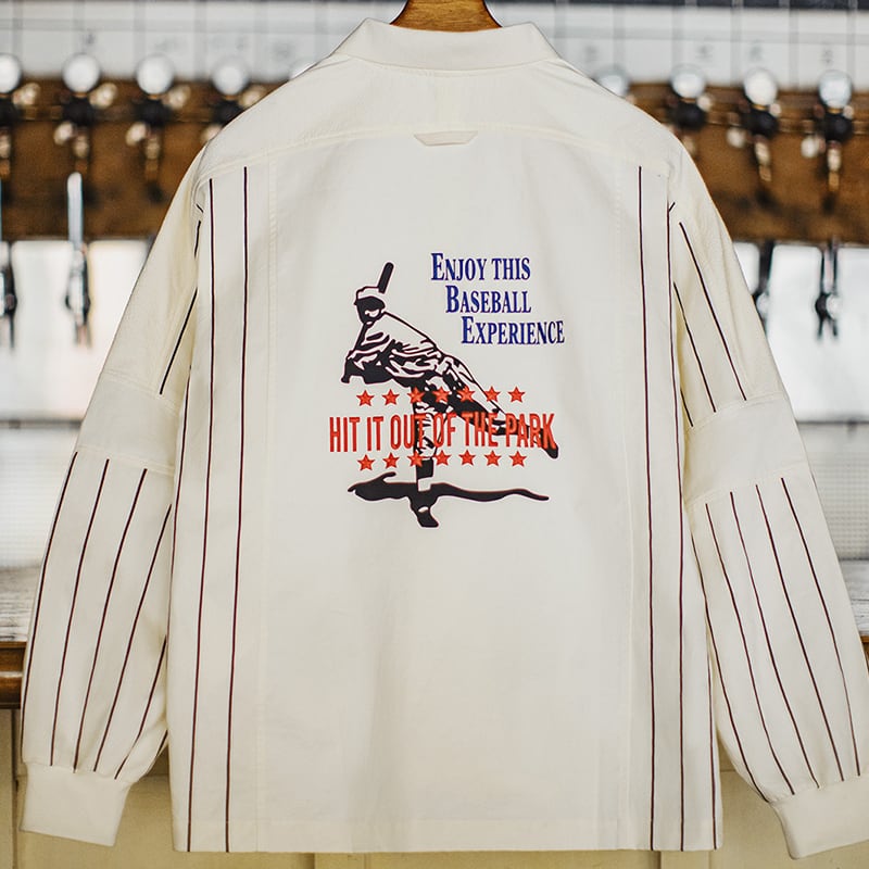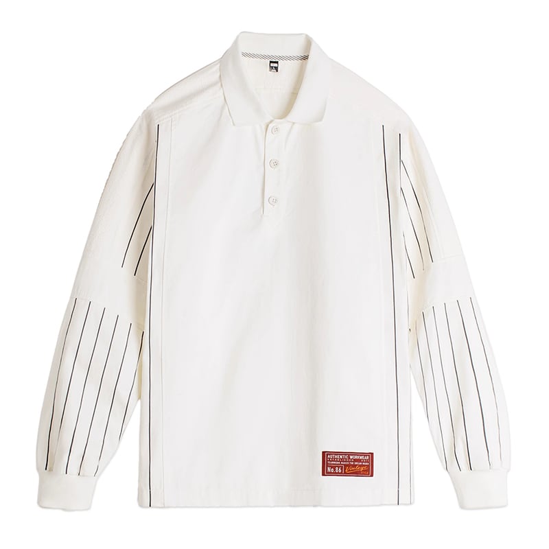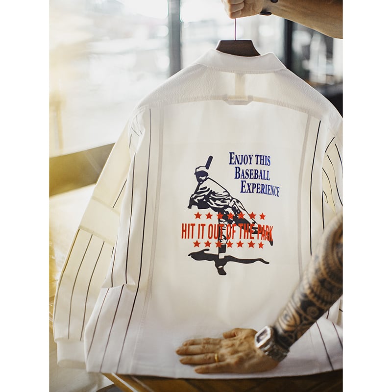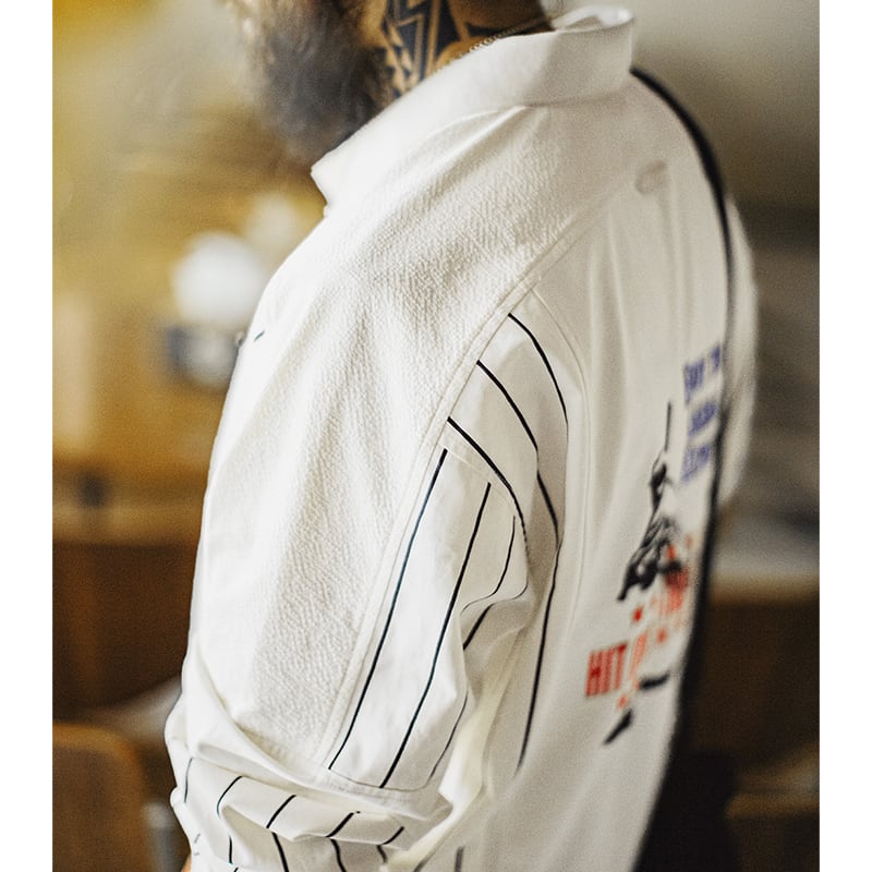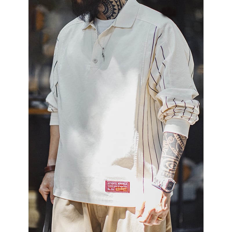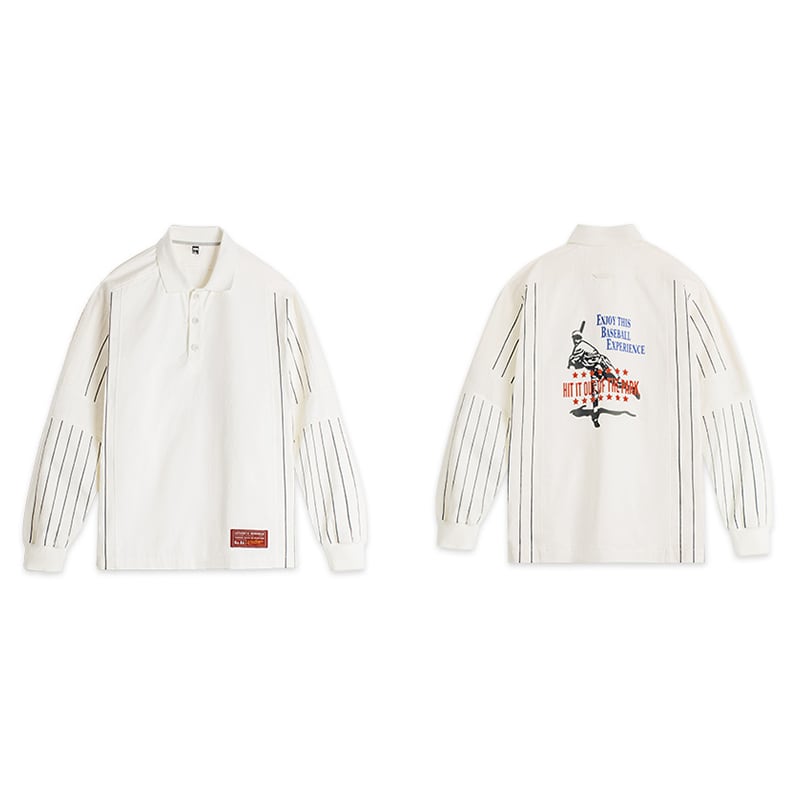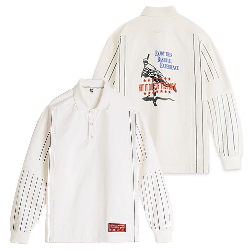 レトロなベースボール刺繍デザインが特徴のロングスリーブポロシャツ。