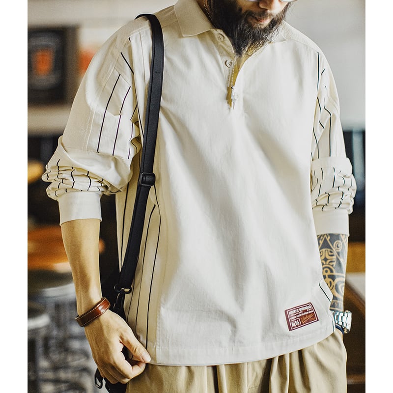 Embroidered stripe long sleeve baseball polo shirt 00442