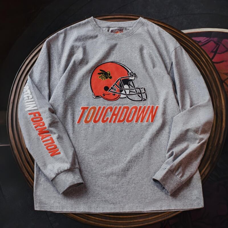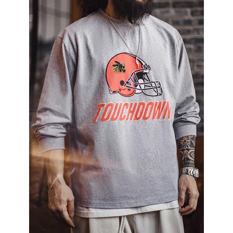 ヴィンテージ感漂うアメフトロゴが目を惹くロングスリーブTシャツ。