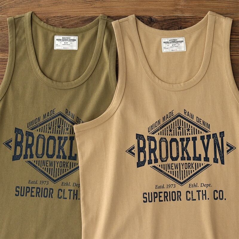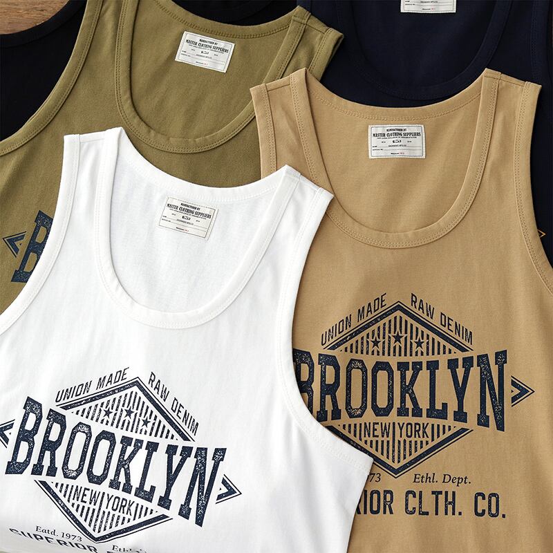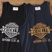 レトロ感のある「BROOKLYN」ロゴが目を引くラウンドネックタンクトップ。