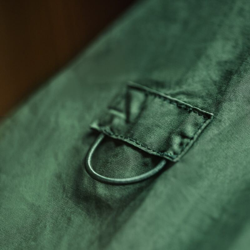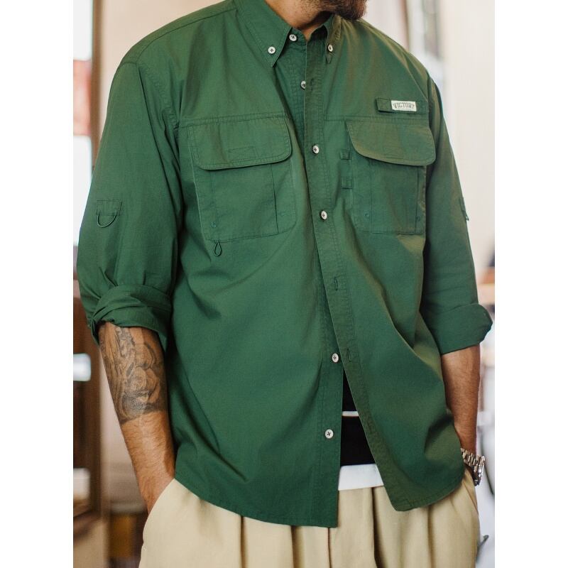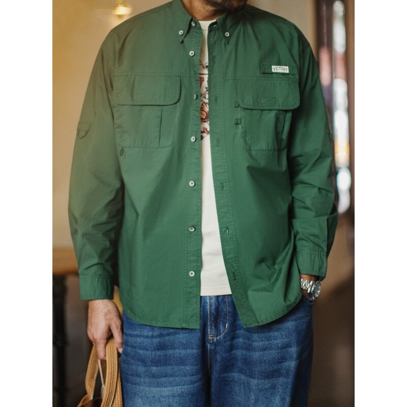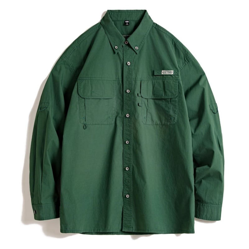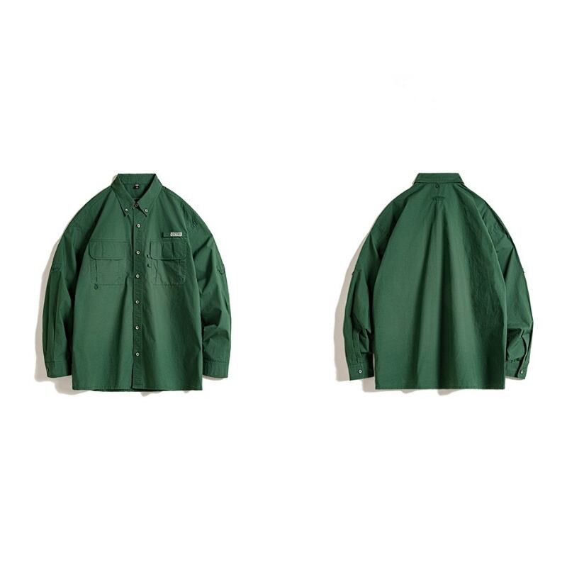 胸元の大きなフラップポケットやボタンダウン襟が、機能性とデザイン性を両立。