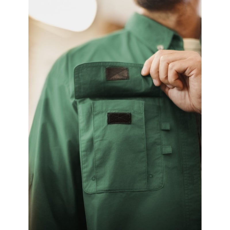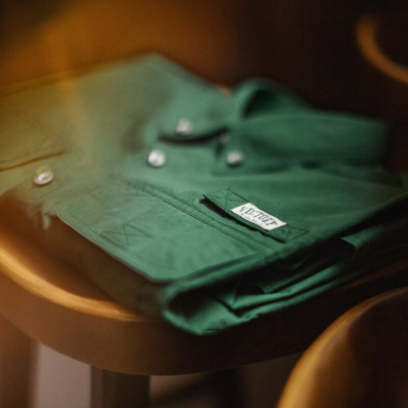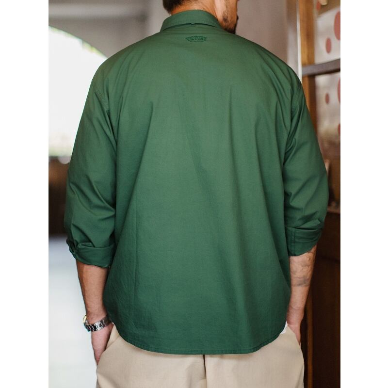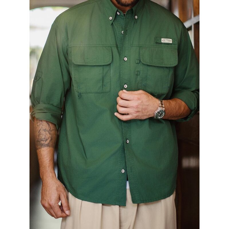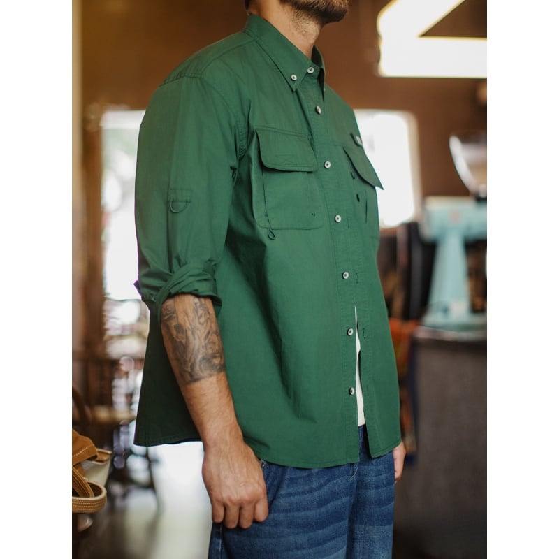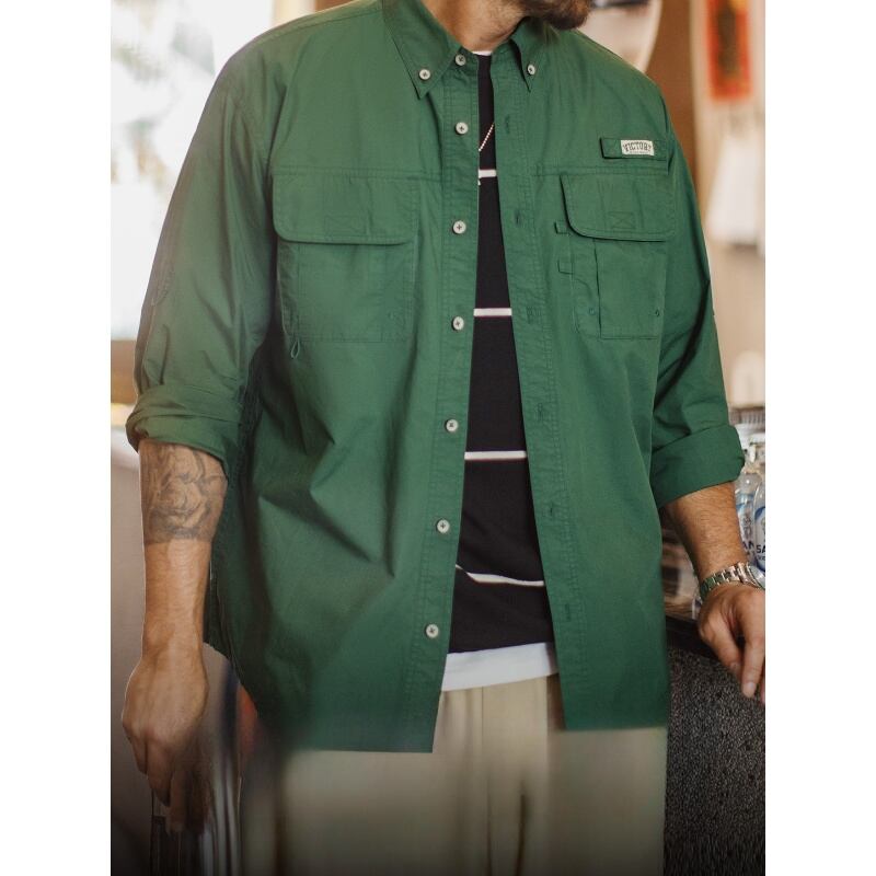 胸元の大きなフラップポケットやボタンダウン襟が、機能性とデザイン性を両立。