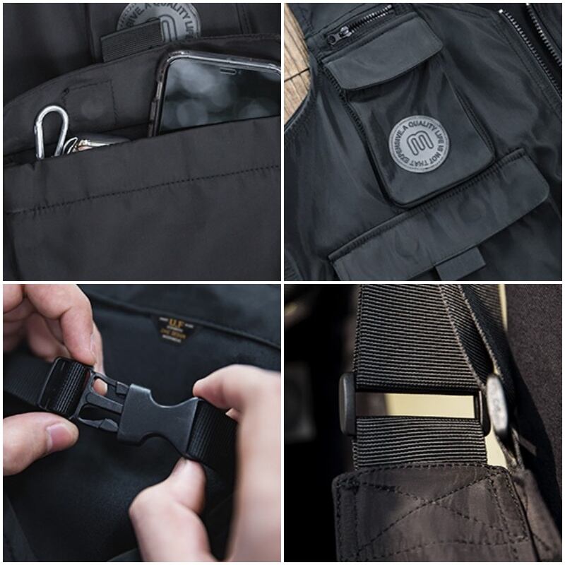 多様な収納ポケットが特徴的なベスト。