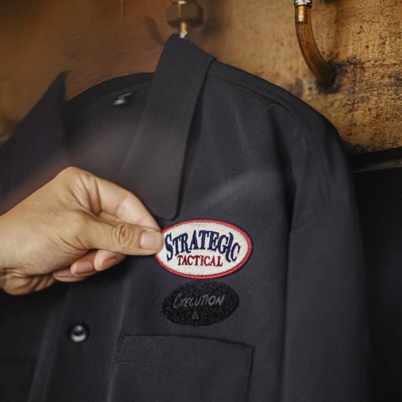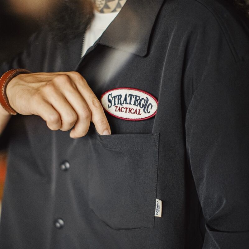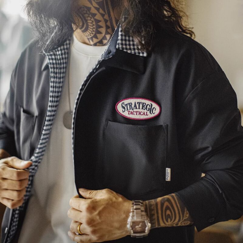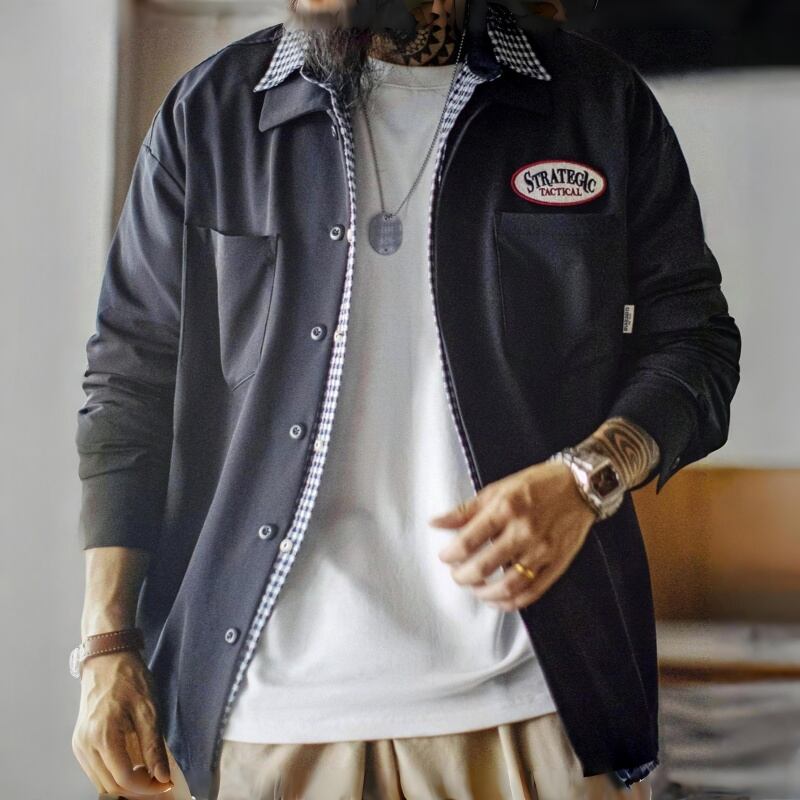 刺繍パッチをアクセントにしたシャツです。