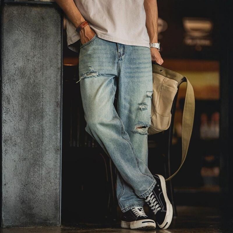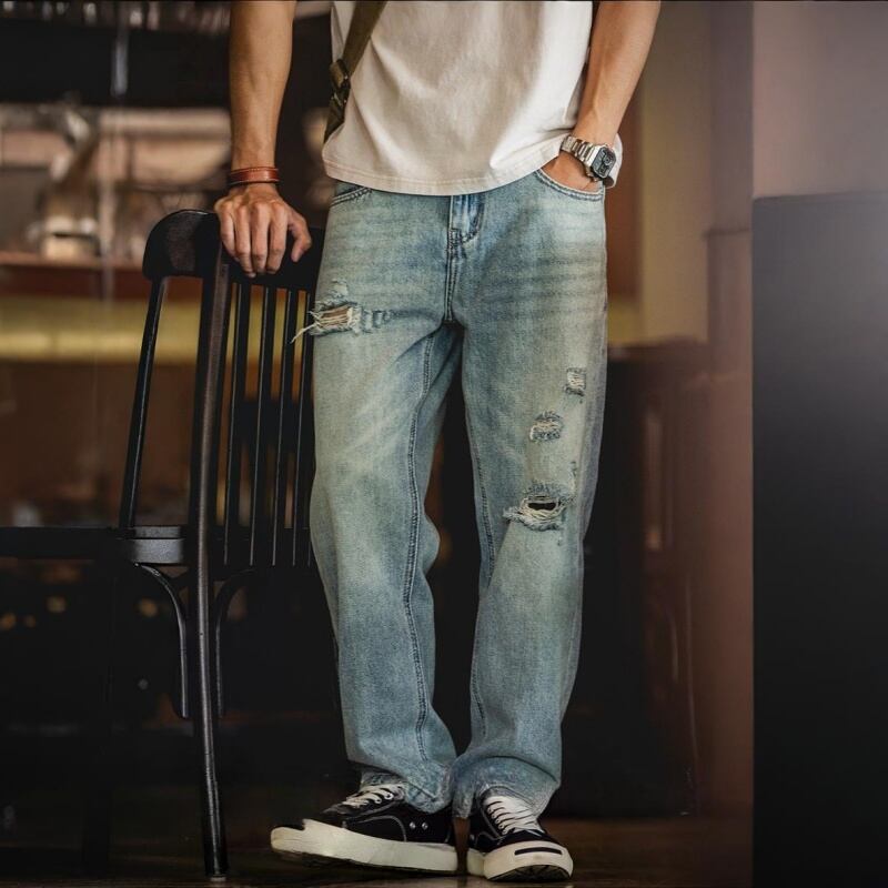 絶妙なダメージ加工と立体的な色落ちが魅力のストレートデニム。