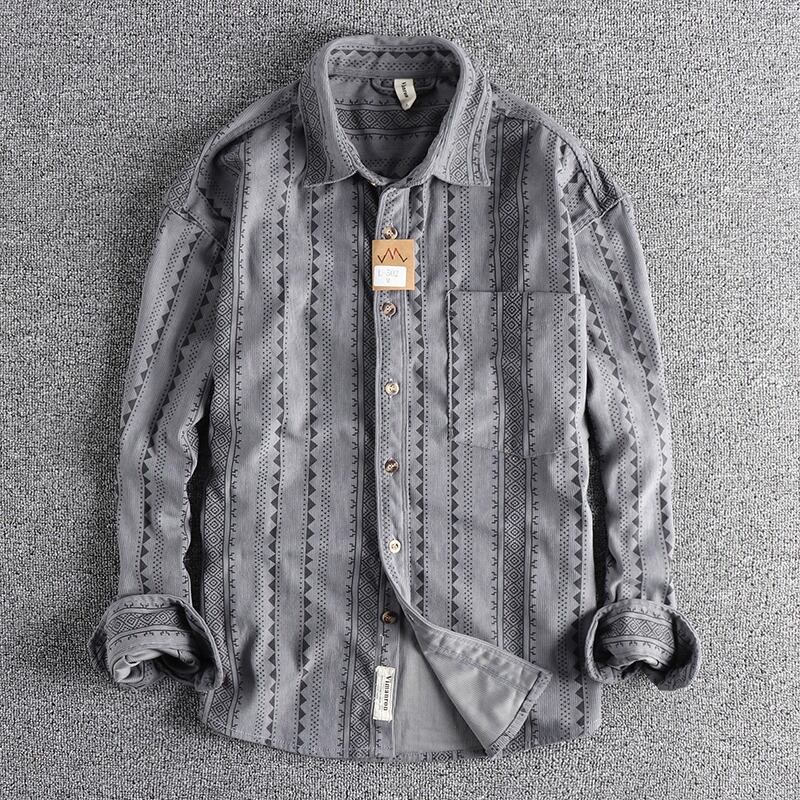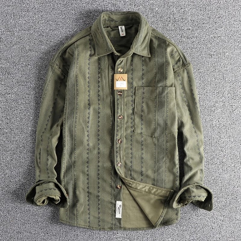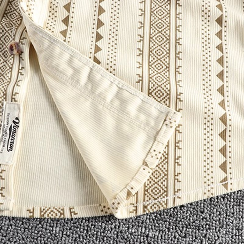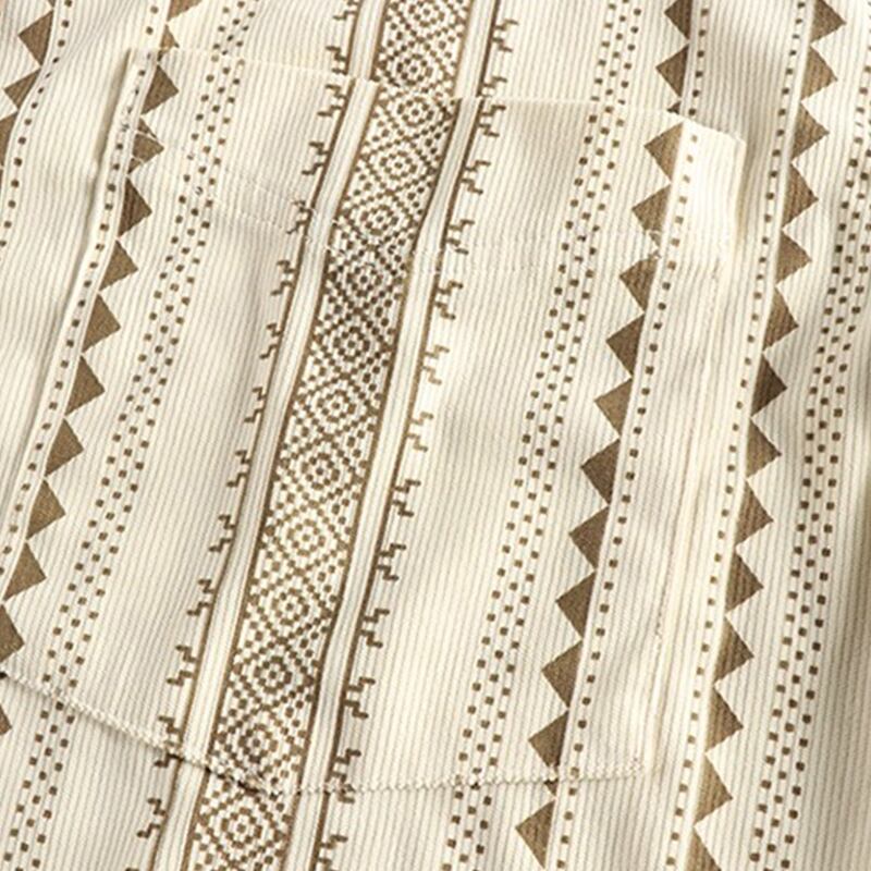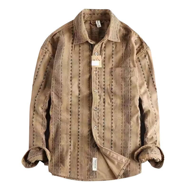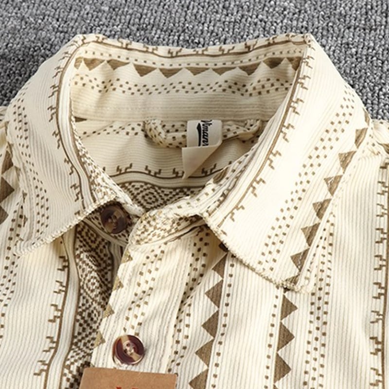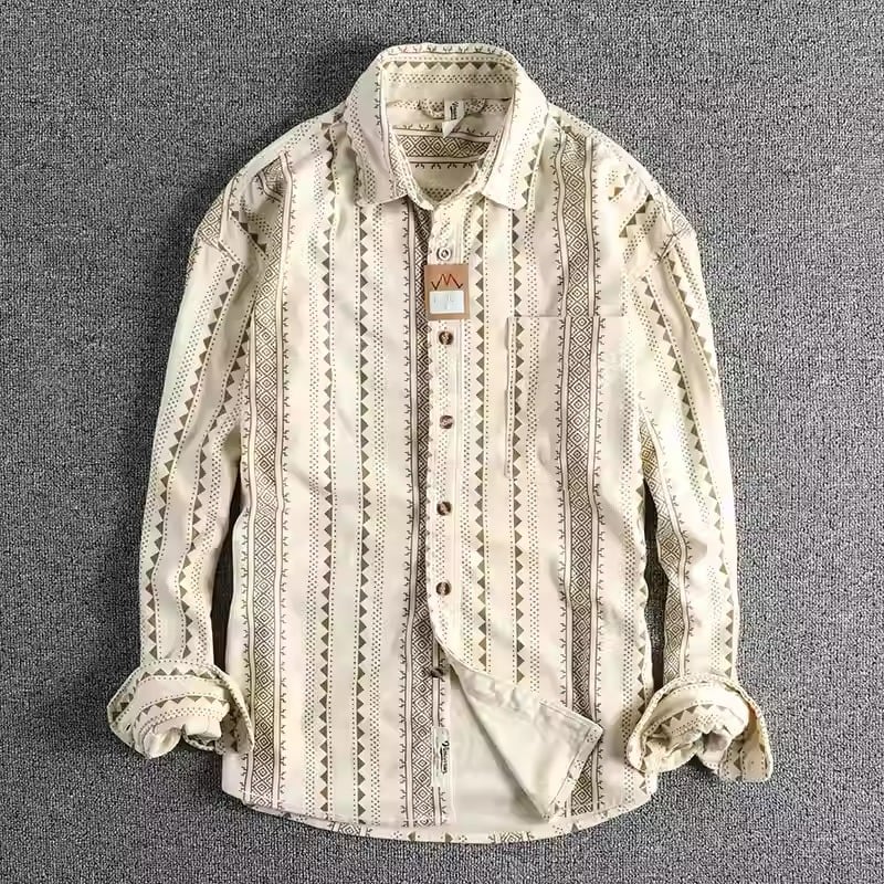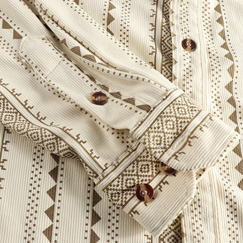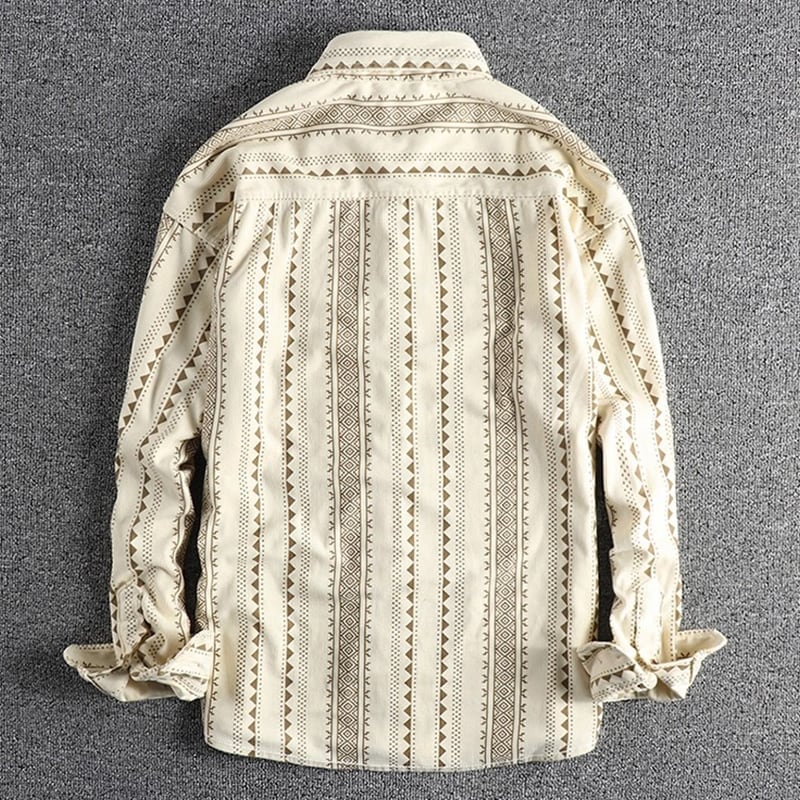 民族的な幾何学模様が魅力の長袖シャツ。
