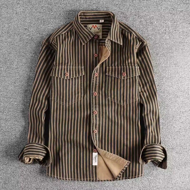 落ち着いたカラーと細かなストライプが、ラギットかつクリーンで