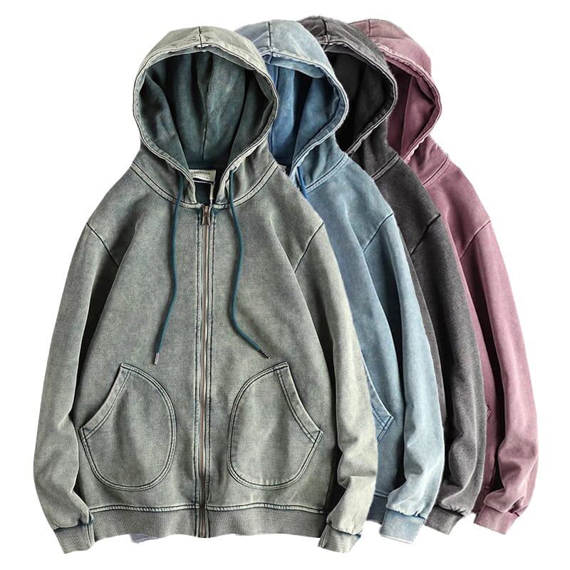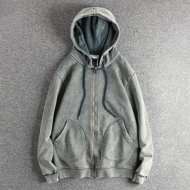 ヘビーウォッシュ加工で絶妙なヴィンテージの雰囲気漂うフルジップアップパーカー。