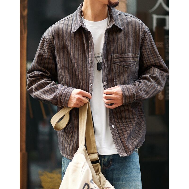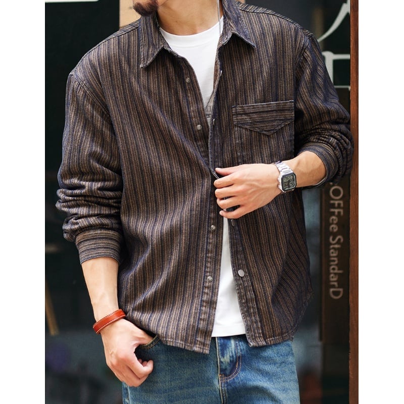 Washed striped jacquard shirt 00463