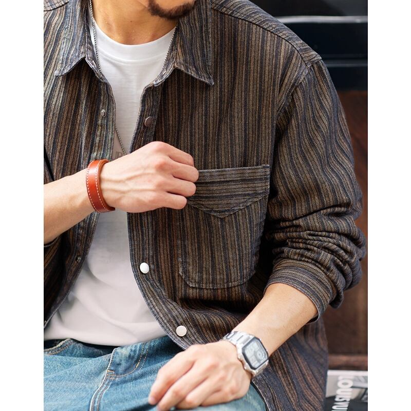 落ち着いた色合いとレトロな雰囲気が、シンプルなスタイルに深みを加えます。