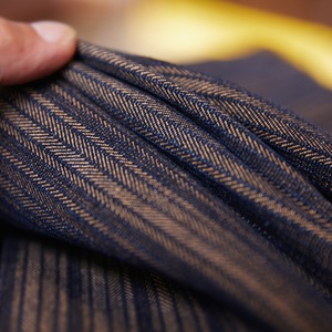 ストライプを織りで表現した生地が、存在感を放つ一枚。