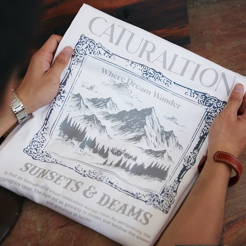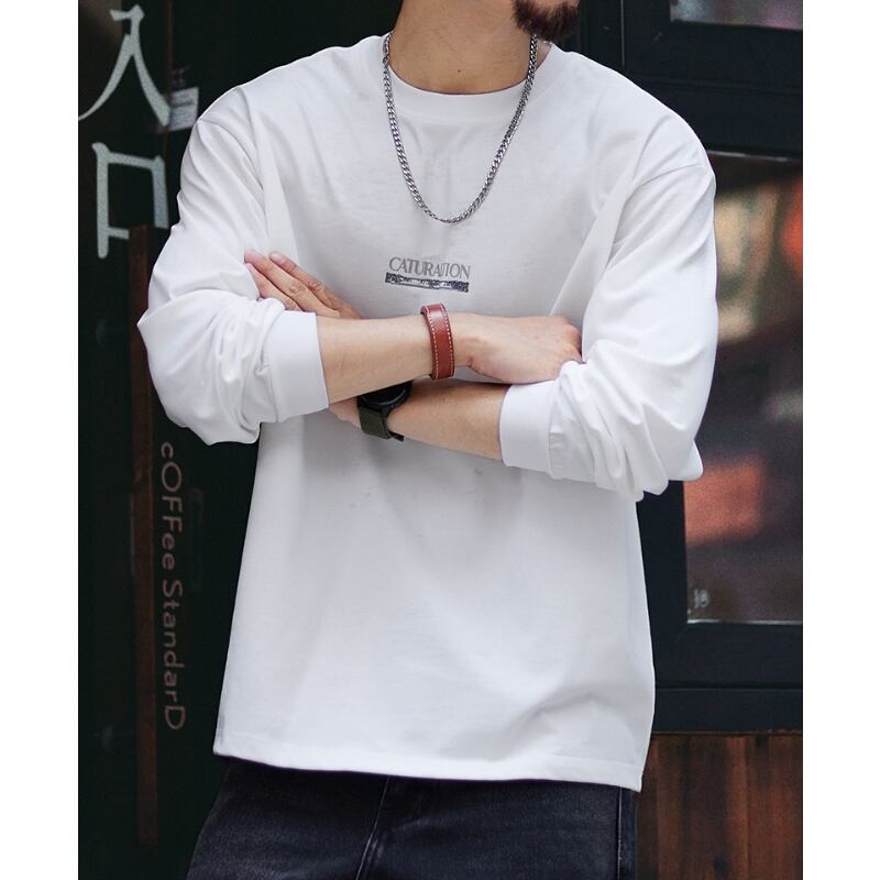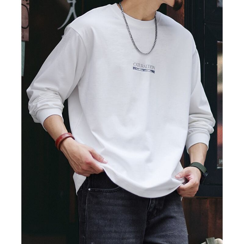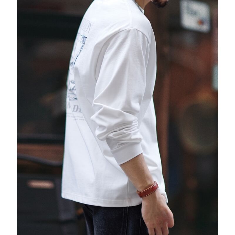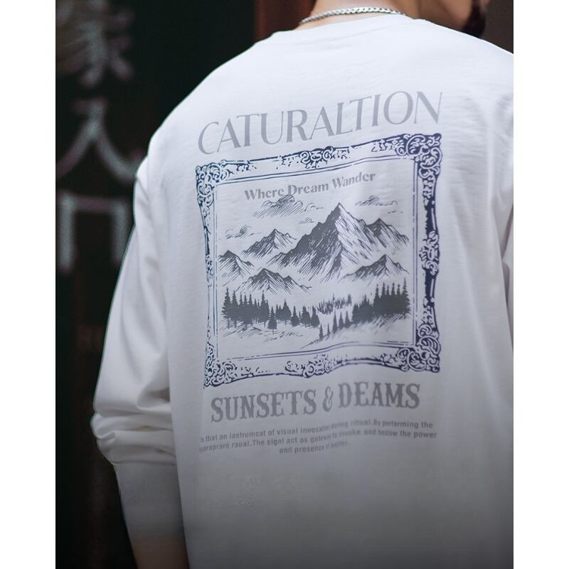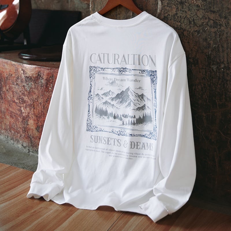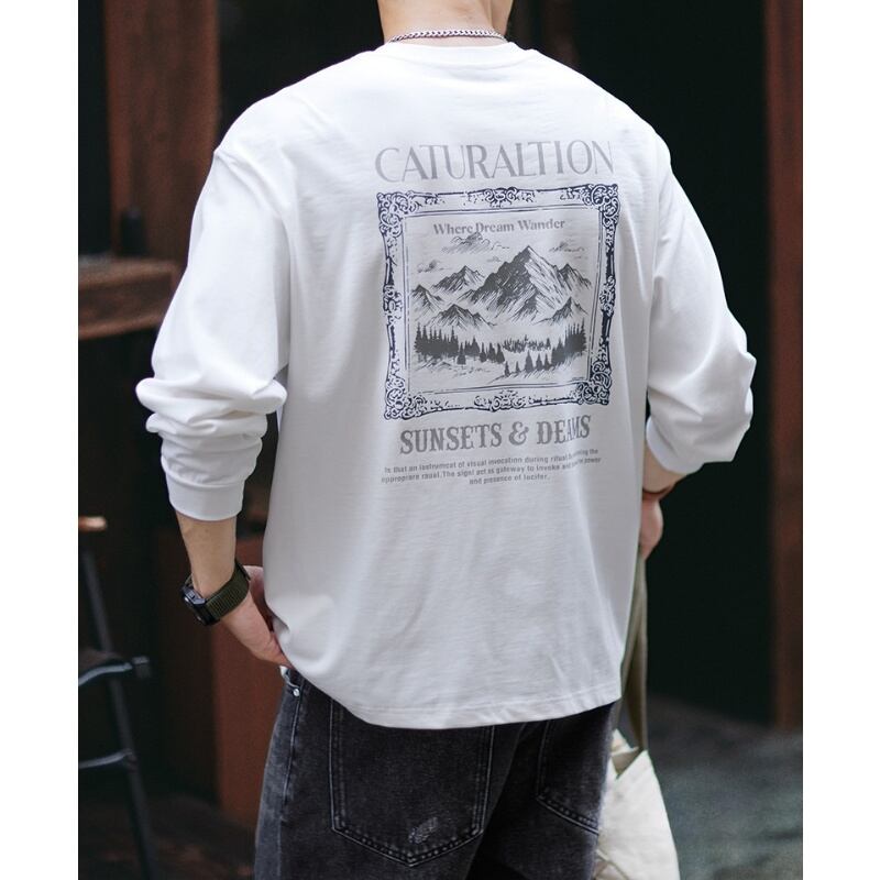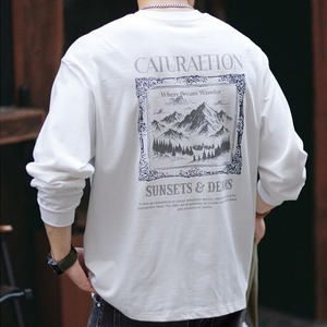 Heavy cotton back print mountain graphic long sleeves t-shirt 00464