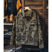ミリタリーテイストの迷彩柄ジャケット。
