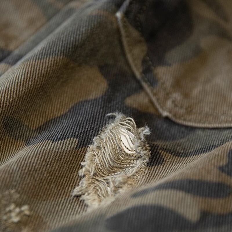 シックな迷彩柄と適度なダメージ加工で一枚で主役になるアイテムです。